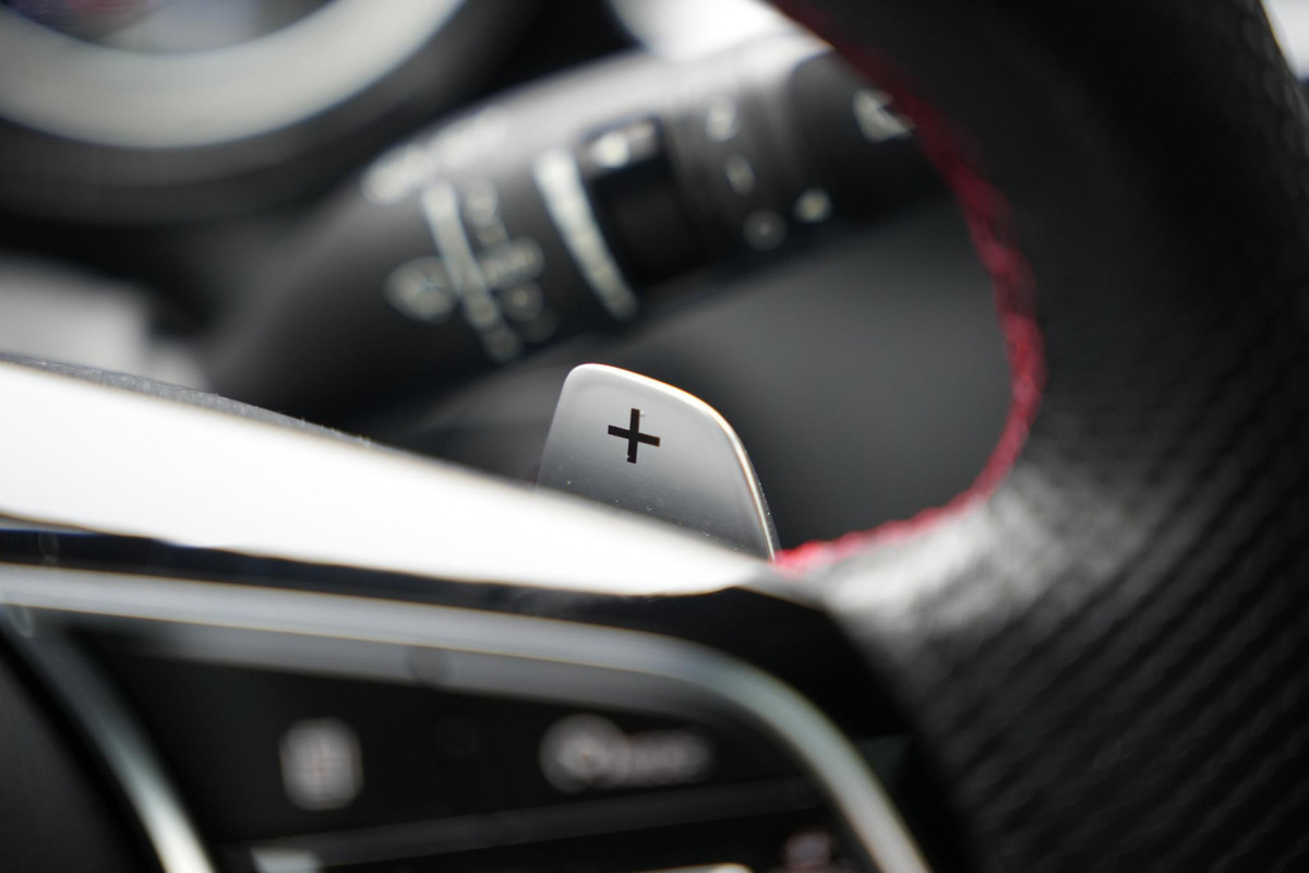 De auto is zeer compleet uitgerust met onder andere panoramadak, adaptieve cruise control, JBL premium soundsysteem, navigatie, Apple CarPlay en Android Auto, achteruitrijcamera, parkeersensoren, stoel- en stuurverwarming, climate control, LED-verlichting en uitgebreide rijassistentiesystemen. Daarnaast beschikt hij over sportieve GT-details zoals halflederen sportstoelen met memory, zwarte hemelbekleding en rode contraststiksels.