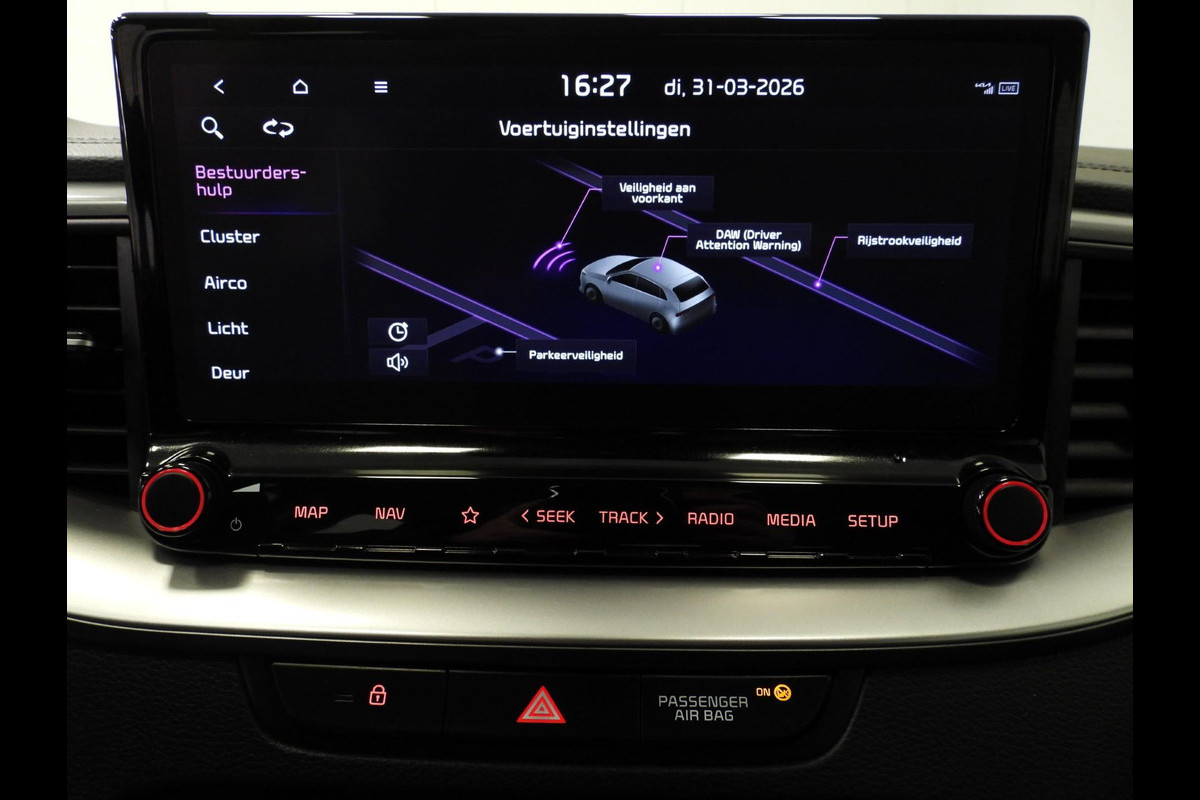De geavanceerde technologie in deze Kia is in staat om onderweg het verkeer om u heen te monitoren en er op te reageren. Zo hebt u als het ware een automatische co-piloot aan boord. Het Lane-keeping systeem zorgt dat u mooi binnen de lijntjes blijft. Ongemerkt buiten de rijstrook komen is er niet meer bij. Forward collision warning waarschuwt bij een dreigende aanrijding met een voorligger. Vermoeid achter het stuur zitten vergroot de kans op een ongeval. Vermoeidheidsherkenning waarschuwt tijdig als u aan een rustpauze toe bent. De veiligheid van deze auto wordt verder verhoogd door hill hold functie, autonoom remsysteem en bandenspanningcontrolesysteem.