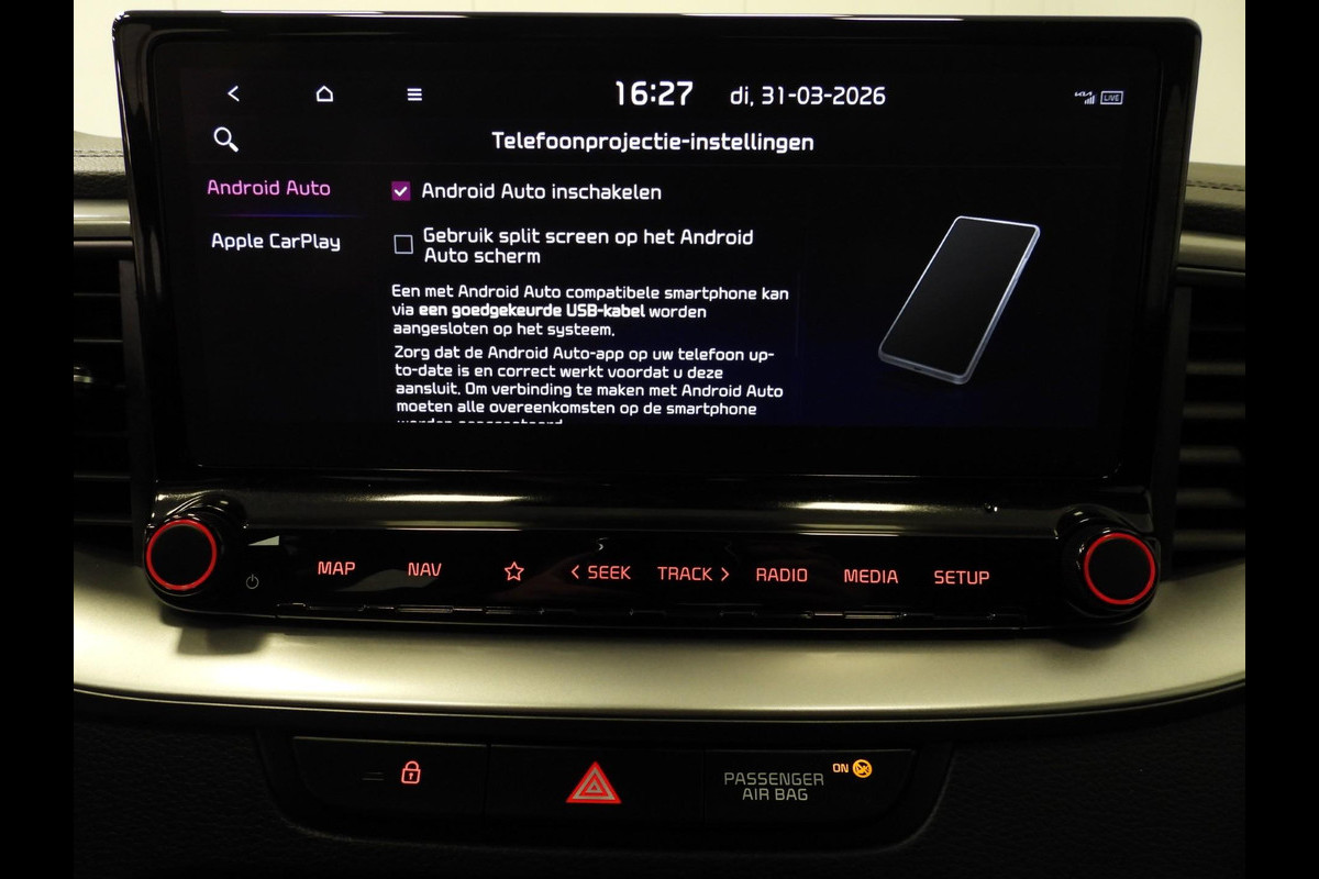 Met een gerust hart achteruitrijden? Dat kan, dankzij de achteruitrijcamera. Communiceren met uw auto? Dat gaat via remote services. Met uw smartphone maakt u waar dan ook contact om allerlei functies te checken of te activeren. Voor de veiligheid op de weg is het goed dat u uw ogen op de weg kunt houden en uw handen aan het stuur. Want het audiosysteem, met DAB-ontvangst, en het full map navigatiesysteem bedient u vanaf het stuurwiel en met spraakbediening. Nooit meer te warm of te koud. De climate control zorgt altijd voor de temperatuur die u kiest. In deze Kia kunt u zich concentreren op het verkeer, terwijl de auto de omgeving voor u in de gaten houdt. Een automatisch inschakelbare verlichting zorgt dat de verlichting aangaat als het donkerder wordt - in tunnels bijvoorbeeld - en de regensensor schakelt de ruitenwissers in als het nodig is. U hoeft er niets aan te doen. Deze auto is voorzien van automatisch dimmende binnenspiegel, isofix-aansluiting, centrale deurvergrendeling met afstandsbediening, bagage afdekhoes en lederen versnellingspook.