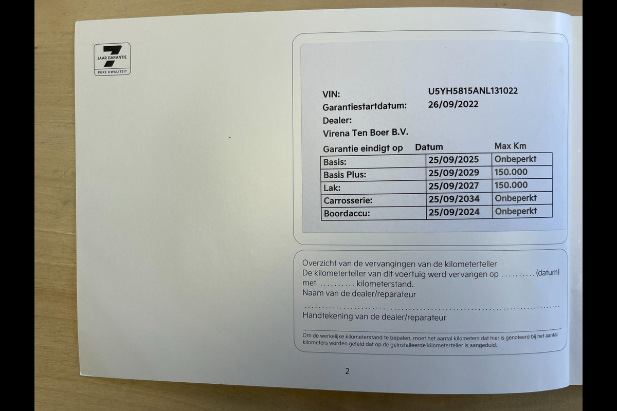 Onderhoudsboekjes: Aanwezig (dealer onderhouden)