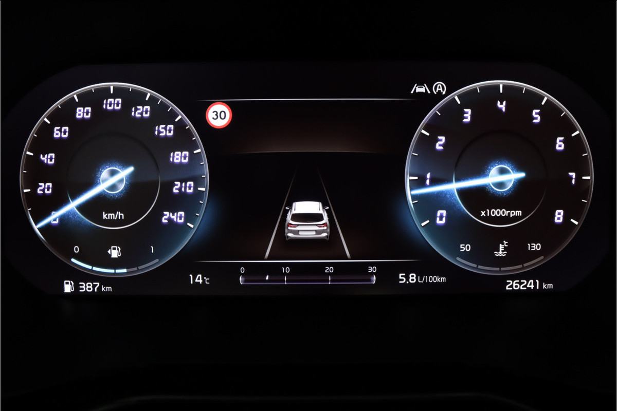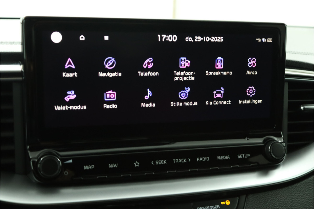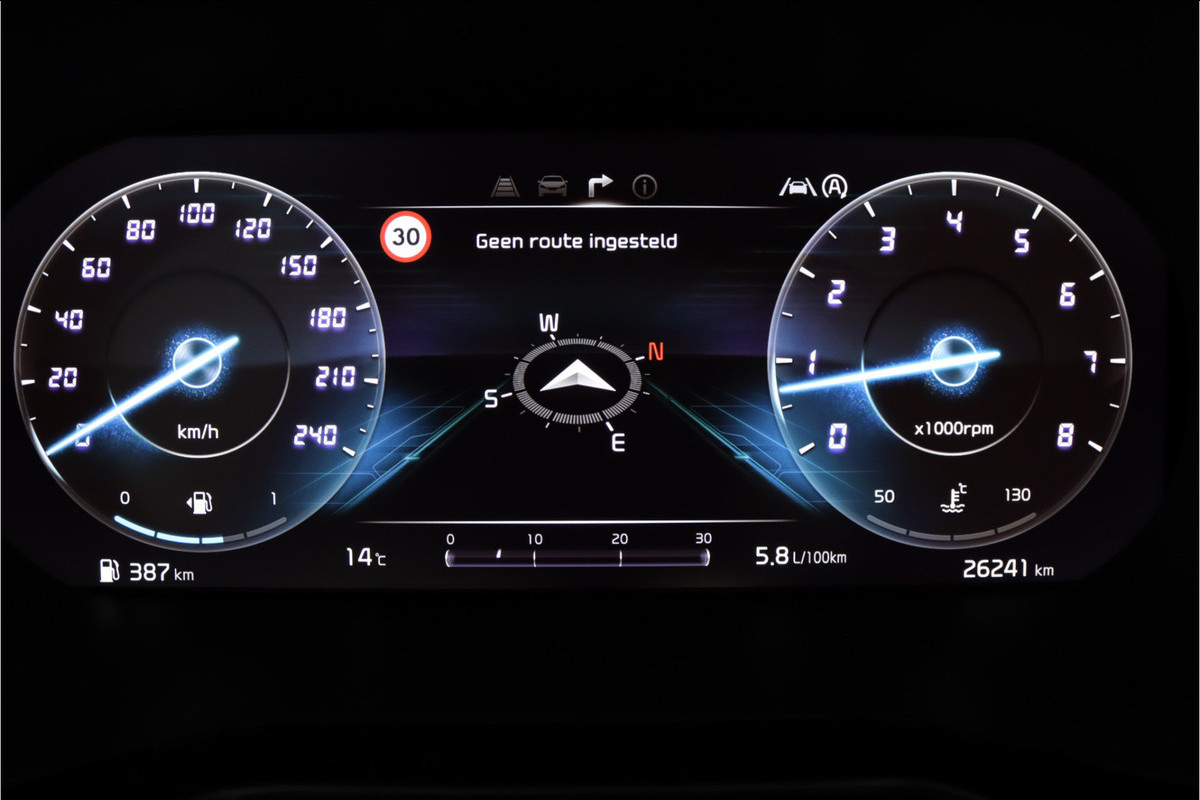Het digitale dashboard vertelt u alles wat u wilt weten voor een slimme, comfortabele en veilige rit. Met de achteruitrijcamera ziet u precies wat er achter de auto gebeurt. Locatie, motorconditie, storingen... via Connected Services krijgt u alle vitale info over de auto door. Ook handig bij pech! U kunt tijdens de rit uw ogen steeds op de weg houden, want het audiosysteem (met DAB!) en het full map navigatiesysteem kunt u bedienen vanaf het stuur of met spraak. Moet uw smartphone ook even tanken? Bijladen kan supersimpel met de draadloze telefoonlader. Ook is de Kia uitgerust met: electronic climate control, regensensor, sportstuurwiel, keyless entry, automatisch dimmende binnenspiegel en lederen versnellingspook.