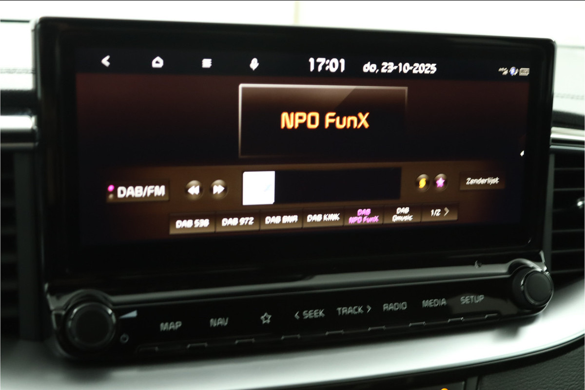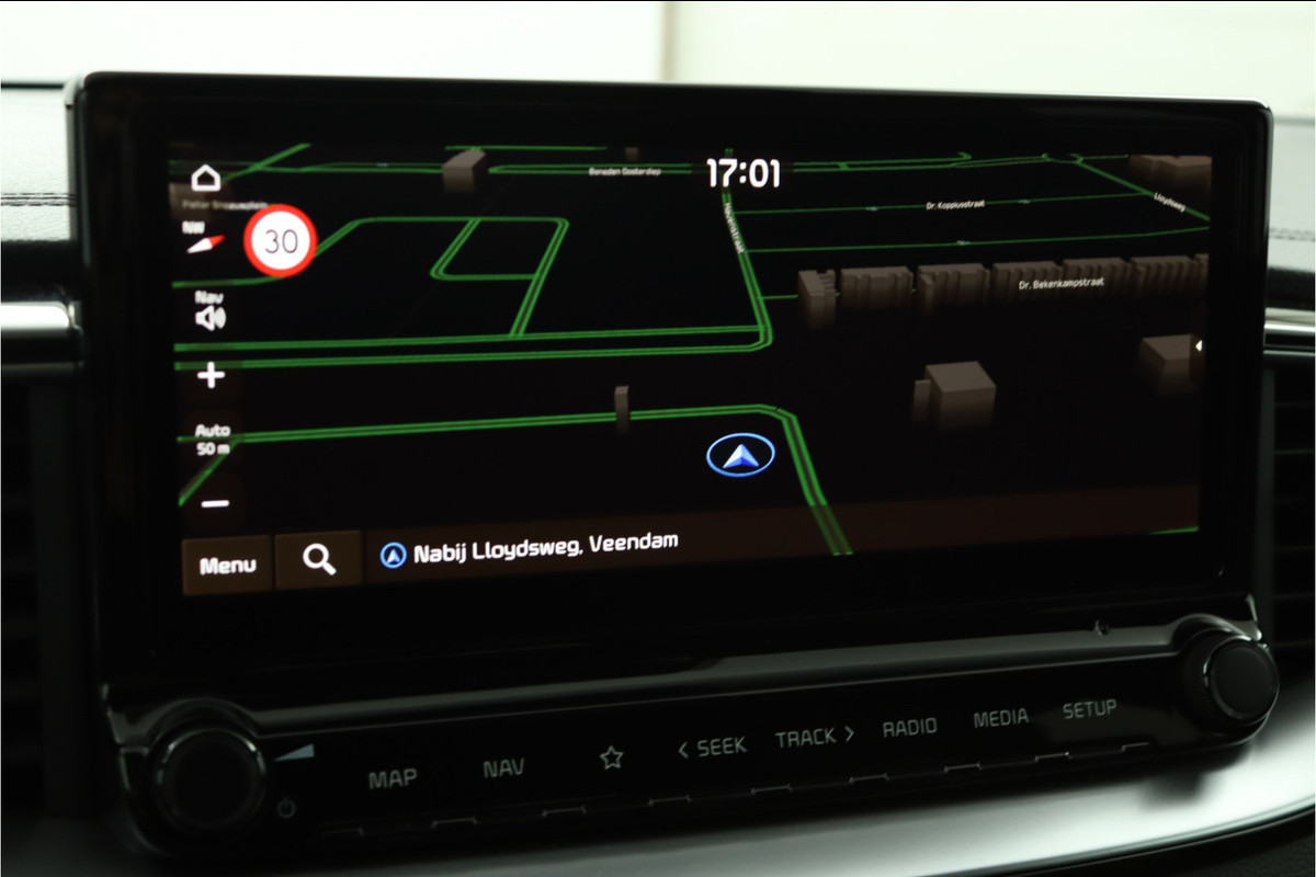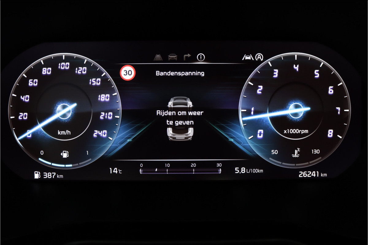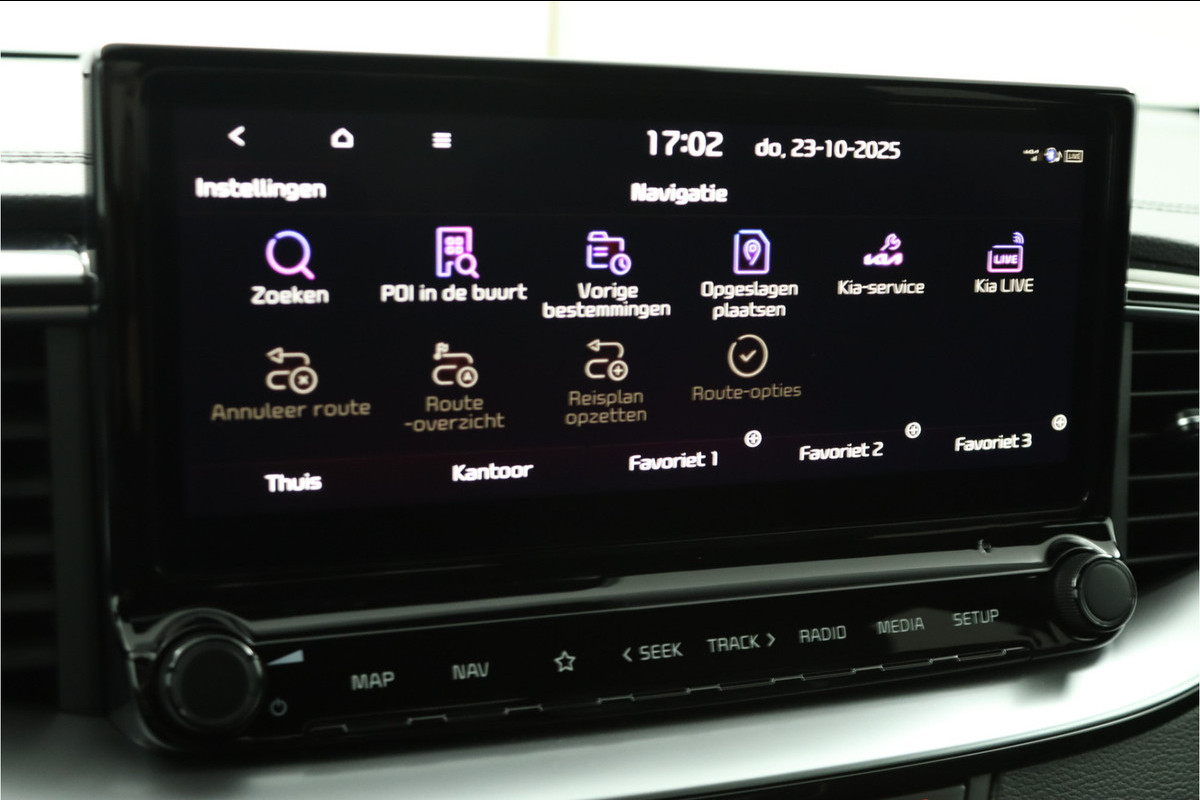 Het digitale dashboard vertelt u alles wat u wilt weten voor een slimme, comfortabele en veilige rit. Met de achteruitrijcamera ziet u precies wat er achter de auto gebeurt. Locatie, motorconditie, storingen... via Connected Services krijgt u alle vitale info over de auto door. Ook handig bij pech! U kunt tijdens de rit uw ogen steeds op de weg houden, want het audiosysteem (met DAB!) en het full map navigatiesysteem kunt u bedienen vanaf het stuur of met spraak. Moet uw smartphone ook even tanken? Bijladen kan supersimpel met de draadloze telefoonlader. Ook is de Kia uitgerust met: electronic climate control, regensensor, sportstuurwiel, keyless entry, automatisch dimmende binnenspiegel en lederen versnellingspook.