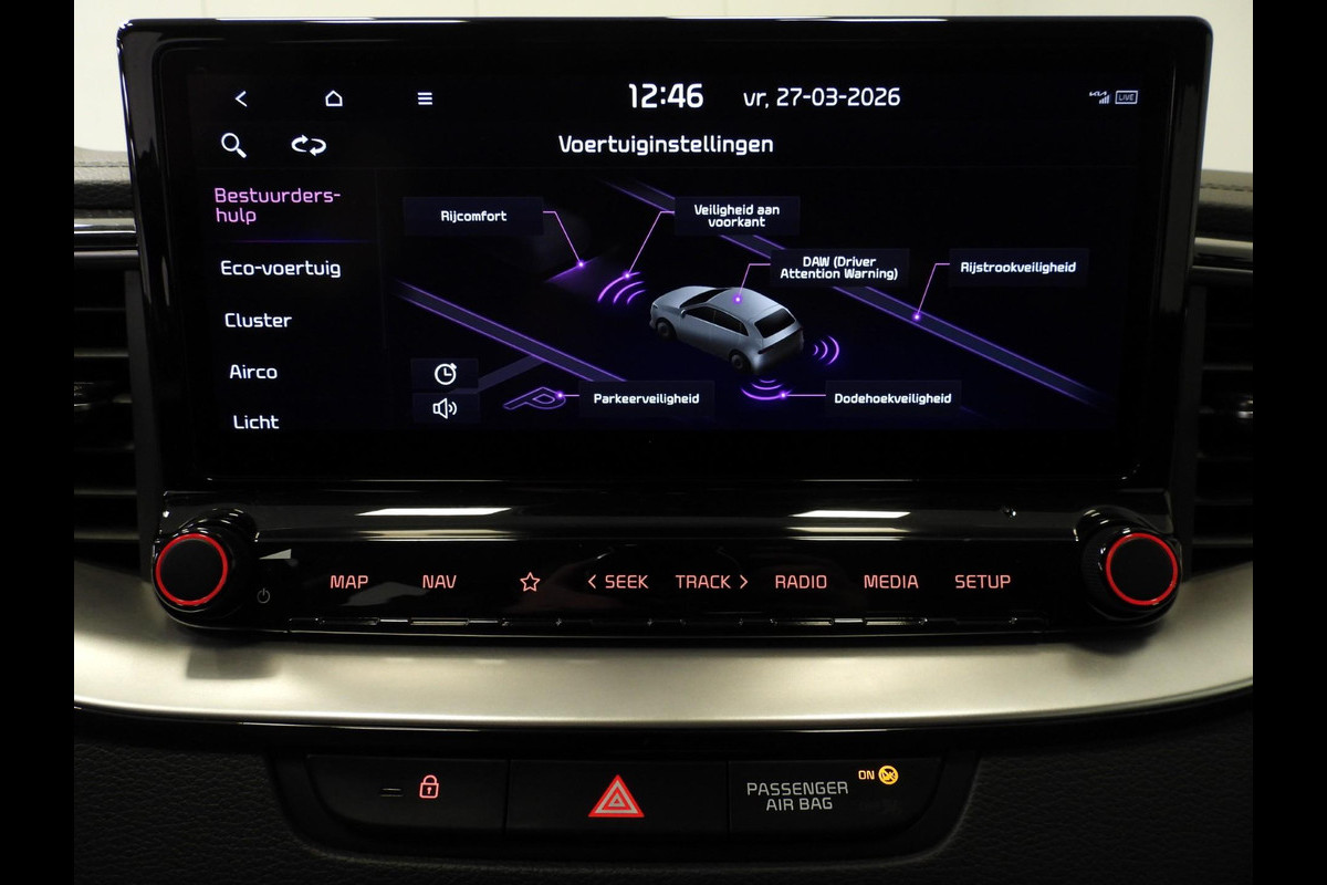 Zoals u mag verwachten van deze Kia Ceed Sportswagon is hij uitgerust met een reeks aan actieve veiligheidssystemen. Het Lane-keeping systeem zorgt dat u mooi binnen de lijntjes blijft. Ongemerkt buiten de rijstrook komen is er niet meer bij. De forward collision warning geeft een botswaarschuwing als een aanrijding dreigt met een voorligger. Deze auto waarschuwt de bestuurder als die tekenen van vermoeidheid vertoont en kan zo ernstige ongelukken voorkomen. De veiligheid van deze auto wordt verder verhoogd door dodehoekdetectie, hill hold functie, autonoom remsysteem en bandenspanningcontrolesysteem.