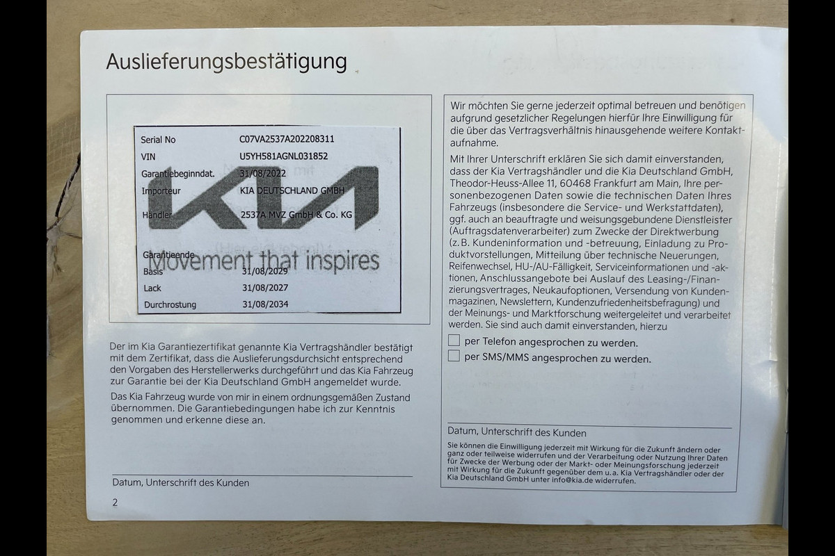 *Vrijwaren van de eventueel ingeruilde auto