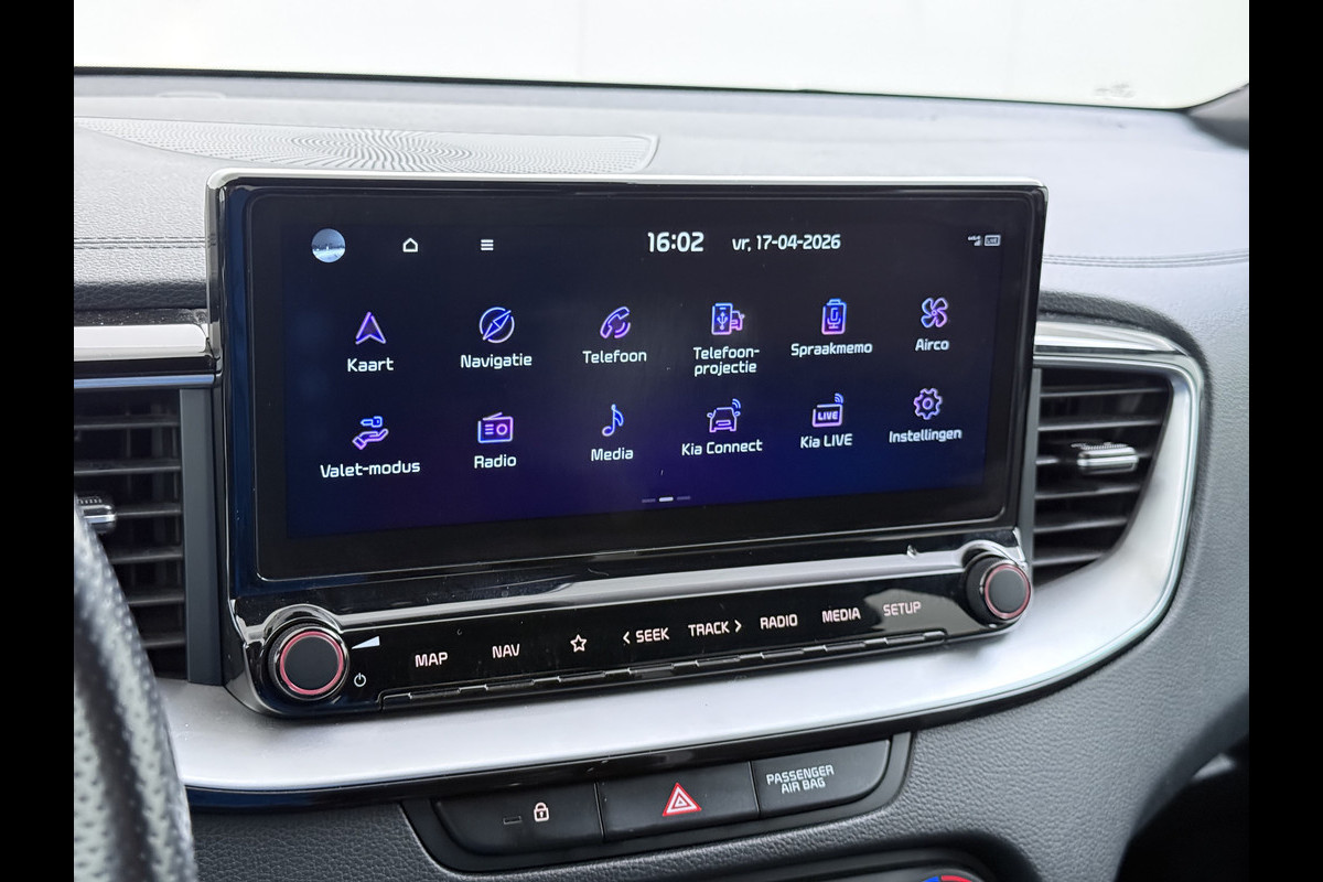 Kommaar-kommaar-kommaar, aldus de achteruitrijcamera. Iedere centimeter vrije ruimte komt haarscherp in beeld. Schadevrij inparkeren maar! Spraakbediening verhoogt de veiligheid en het gebruiksgemak. De auto luistert naar uw instructies en volgt ze op. In één oogopslag weet u de complete systeemstatus van deze auto. Dankzij Connected Services. Zuinig, veilig en ontspannen op pad: dat kan dankzij het aanwezige navigatiesysteem. Met de automatische airconditioning selecteert u de gewenste temperatuur. Het systeem doet de rest. De Kia is standaard voorzien van: DAB ontvangst, regensensor, cruise control, sportstuurwiel, automatisch dimmende binnenspiegel en isofix-aansluiting.