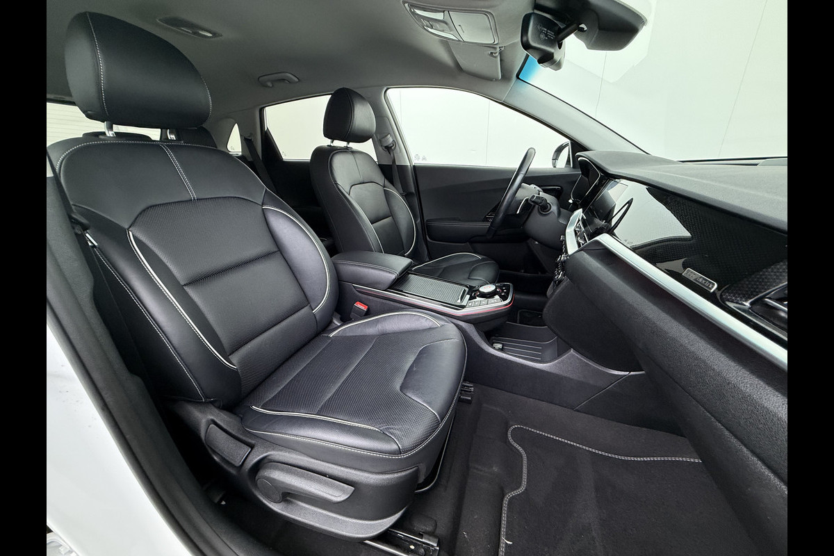 Kia e-Niro 204pk ExecutiveLine 64kWh 3fase SOH 100% Warmtepomp Leer+Elektr.+Verwarmd+Gekoeld+Memory Adaptive-Cruise Navi Ecc Camera Apple C Stuurverwarming Lmv Privacy Glas DAB Vess Lane Assist Blind Spot 11kw thuisladen Origineel Nederlandse Auto Dealer Onderh. Zeer compleet €48.000 nieuw !