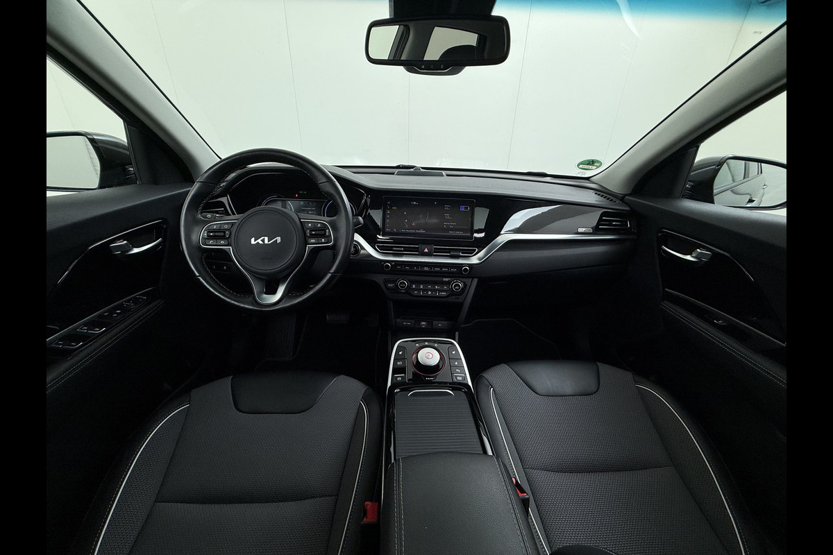 Hij levert uitstekende prestaties en doet dat met zorg voor het milieu. Maar tegelijk is de Kia e-Niro ook gewoon een auto die u volop ruimte en comfort biedt. De actieradius van deze auto is met 455 kilometer ruim voldoende voor de meeste dagelijkse ritten. De lithium-ion accu heeft een capaciteit van 11 kWh en is binnen 8 uur opgeladen. De krachtige motor geeft deze Kia uitstekende prestaties. 's Winters op pad gaan kan een behoorlijke uitdaging zijn. Daarom is deze Kia e-Niro voorzien van weldadige verwarmbare voorstoelen. Een ommetje of een lange trip? De comfortstoelen zorgen elke keer voor een goede zithouding! Het interieur baadt in een zee van licht met het elektrische bediende glazen panoramadak. Pak aan, 't is winter! Zo'n verwarmd stuurwiel is dan bijzonder prettig! De uitmonstering van deze auto wordt gecompleteerd door onder meer elektrisch verstelbare stuurkolom, 17 inch lichtmetalen velgen, LED koplampen, donker getint glas achter, in delen neerklapbare achterbank en LED-achterlichten.