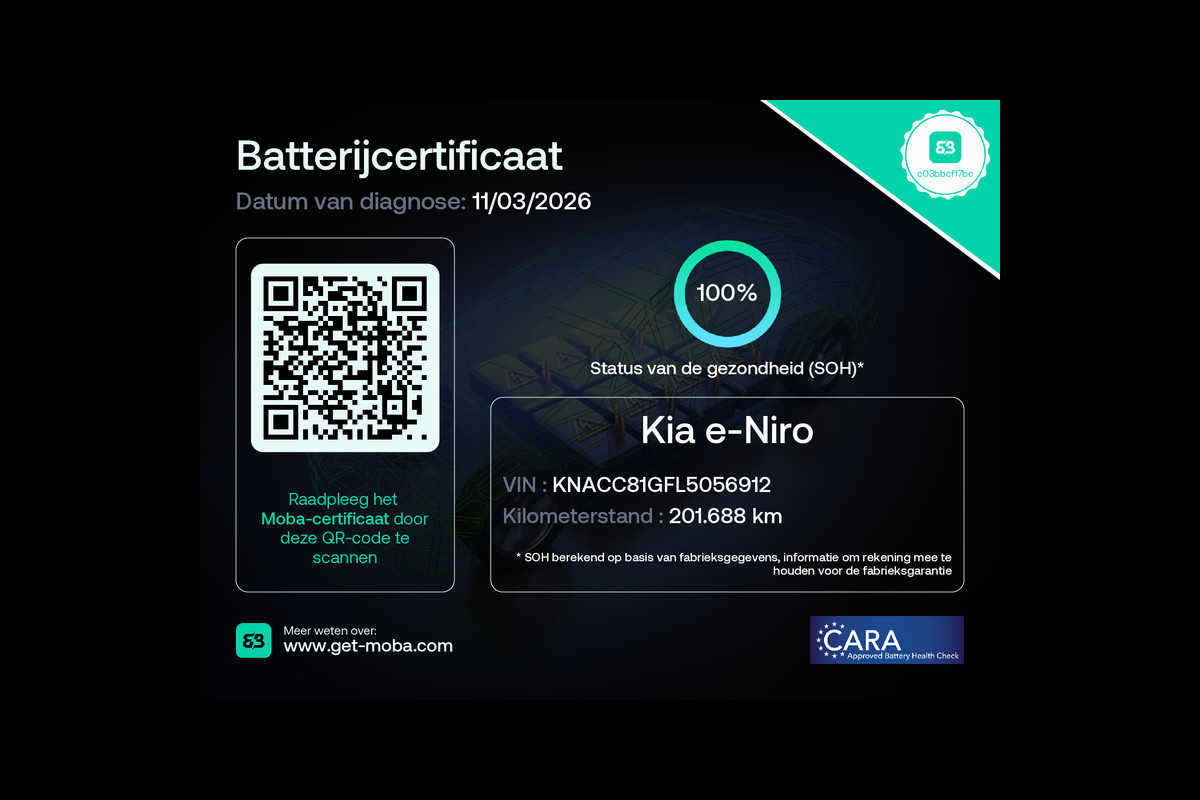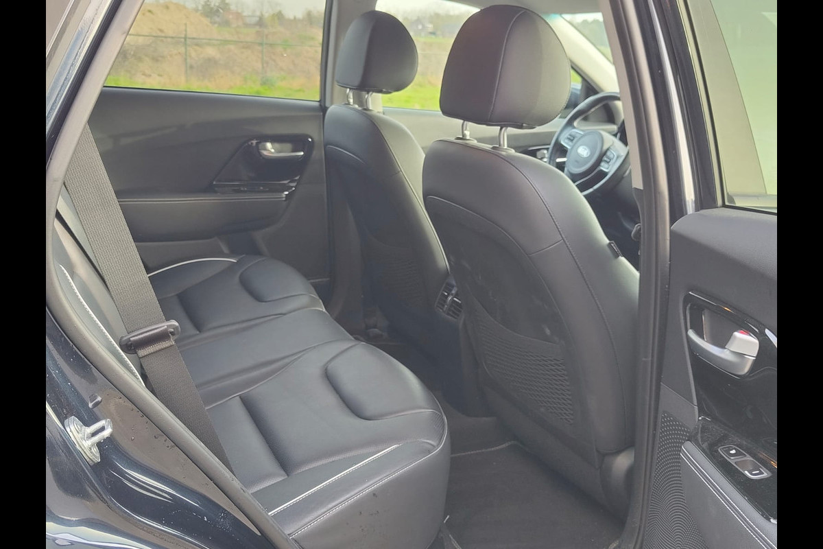 De Kia e-Niro vertegenwoordigt de nieuwe generatie auto's en verenigt elektrische kwaliteit en duurzaamheid met elkaar. U hoort slechts het lichte gezoem van de elektromotor tijdens het rijden. Een krachtige motor geeft deze auto zijn sportieve prestaties. De hoogwaardige, lederen bekleding benadrukt de kwaliteit van deze Kia. Dankzij de elektrische stoelbediening is het gemakkelijk om de optimale zitpositie te vinden. Zelfs op de koudste dagen zorgt het verwarmbare stuurwiel, de voorstoelen en de achterbankverwarming ervoor dat u en uw passagiers het nooit koud hebben in deze luxueuze auto. Ook 17 inch lichtmetalen velgen, LED koplampen, donker getint glas achter, LED-achterlichten en verstelbare lendensteunen zijn aan boord.