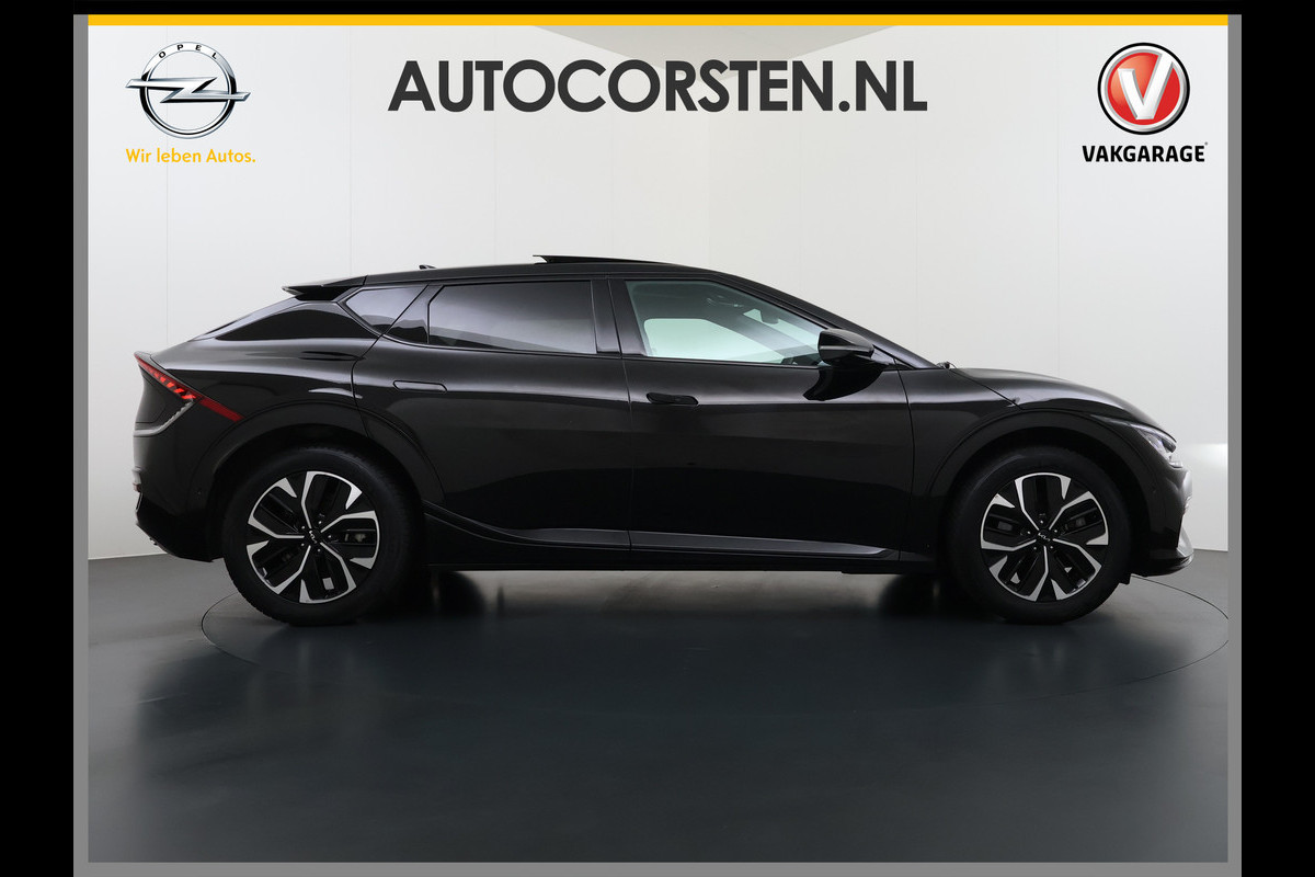 Kijk naar de onvergelijkbare vormgeving. De Kia EV6 is een elektrische auto die zijn bijzondere karakter niet voor de buitenwereld verbergt. U zult verrast zijn door de power van de elektromotor. En stil! Een krachtige motor geeft deze auto zijn sportieve prestaties. U zult maar een handje tekort komen bij het inladen... dan is de elektrisch bedienbare achterklep een uitkomst. En wat een heerlijk vrij gevoel geeft dat elektrisch bediende glazen panorama dak! Zit u goed? De stoelen zijn eenvoudig instelbaar dankzij de elektrische bediening met geheugen. U zult absoluut de luxe waarderen van de stoelverwarming, verwarmbare achterbank, en het verwarmbare stuur dat inbegrepen is in dit voertuig. De koplampen met matrix LED-verlichting zijn het hoogst haalbare op het gebied van autoverlichting. De uitmonstering van deze auto wordt gecompleteerd door onder meer 19 inch lichtmetalen velgen, halflederen bekleding, warmtewerend glas, zwarte hemelbekleding, in delen neerklapbare achterbank en LED-achterlichten.