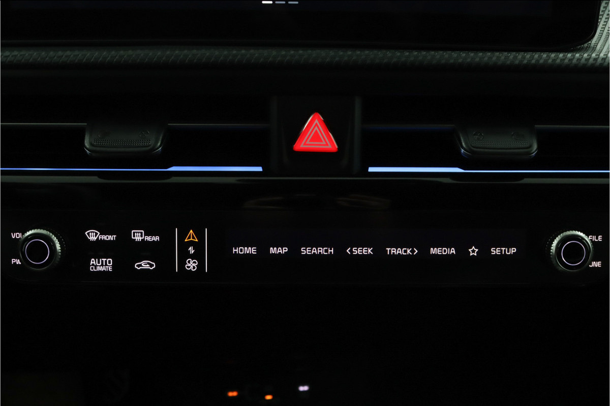 De intelligente veiligheidssystemen in deze auto waken continu over uw veiligheid. Uiteenlopende functies maakt de head-up display zichtbaar in de voorruit. De actuele snelheidslimiet, een inhaalverbod en andere verkeersborden. De verkeersborddetectie ondersteunt u tijdens elke rit. Met het Lane-keeping systeem komt u nooit per ongeluk buiten de rijstrook. Bovenop deze veiligheidsfeatures heeft deze Kia bovendien dodehoekdetector detectiesysteem, forward collision warning system, hill hold functie, vermoeidheidsherkenning, autonoom remsysteem en bandenspanningcontrolesysteem.
