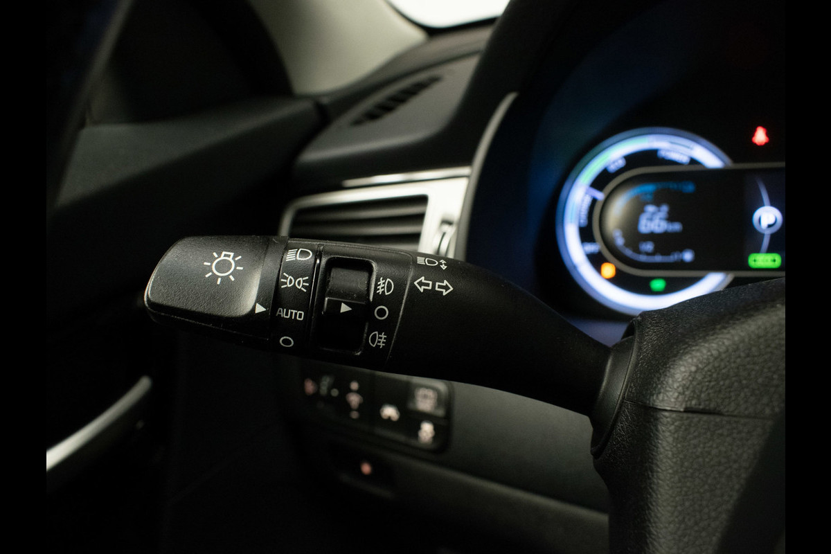 Soepel inparkeren in de krapste parkeervakken. De achteruitrijcamera maakt het mogelijk. In deze Niro vindt u schakelaars op het stuur om het audiosysteem te bedienen en het navigatiesysteem. Electronic climate control verwarmt of koelt het interieur met een druk op de knop. De elektronische systemen in deze Kia helpen u actief om comfortabeler te rijden. Een automatisch inschakelbare verlichting en een regensensor houden de omstandigheden onderweg in de gaten. De voordelen van de aanwezige cruise control hoeven we niet uit te leggen. Een mooie, constante snelheid - niet te snel, niet te langzaam. Precies goed. Extra opties op deze auto zijn: automatisch dimmende binnenspiegel, lederen stuur, centrale deurvergrendeling met afstandsbediening en lederen versnellingspook.