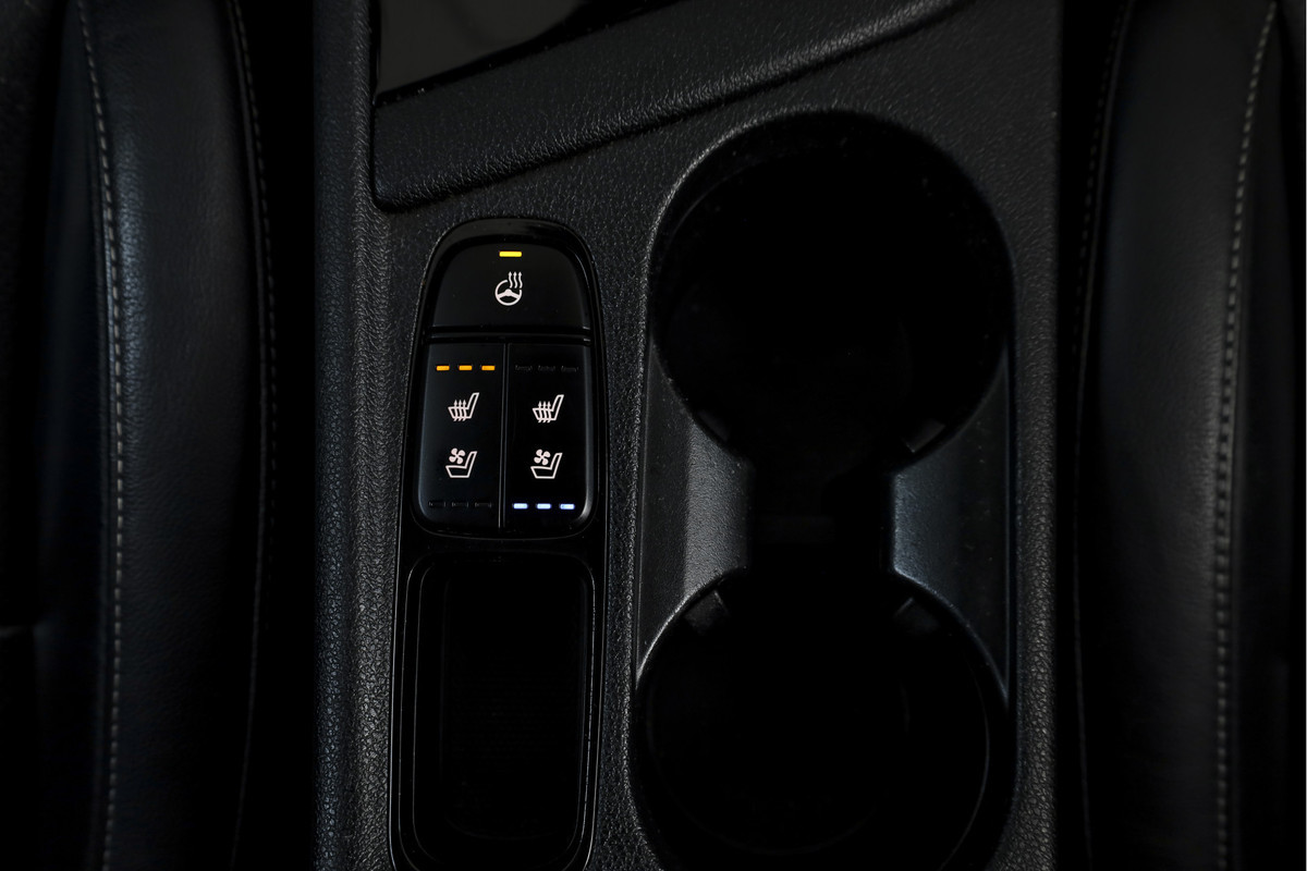 Het interieur is luxe uitgevoerd met leren bekleding en biedt veel comfort dankzij de voorstoelen die in hoogte verstelbaar en verwarmd zijn, aangevuld met stoelventilatie vóór. Ook de achterbank is verwarmd, wat het comfort voor alle inzittenden verhoogt. De elektrisch verstelbare bestuurdersstoel met geheugen en het verwarmde stuurwiel zorgen ervoor dat u altijd ontspannen instapt.
