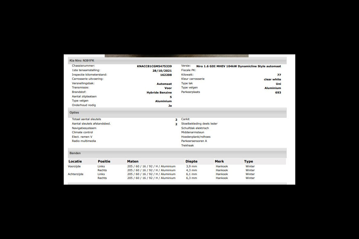 Het kan echter voorkomen dat uit de automatische voertuiginformatie een optie of accessoire naar voren komt die helaas toch niet op de auto aanwezig is.