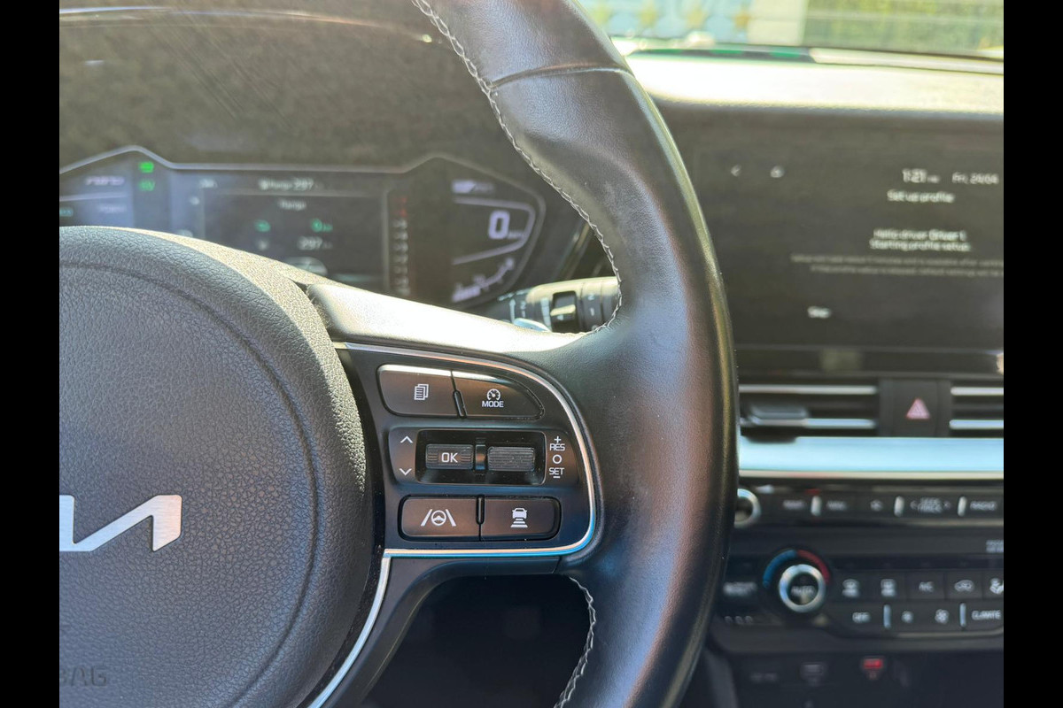 Kia Niro 1.6 GDi 141PK Plug-in Hybrid in de Dynamic Line uitvoering. Dit betreft een zeer luxe uitvoering met compleet met verschillende luxe optionele accessoires: half/ lederen stoelen, achteruitrijcamera, navigatiesysteem en virtueel cockpit, navigatie/multimedia/audio systeem, Apple Carplay/Android Auto, LED-verlichting (rondom!), Parkeersensoren (inc. parkeercamera!), adaptieve Cruise control, ECC, oplaad mogelijkheid, Lane-Assist en nog veel meer!