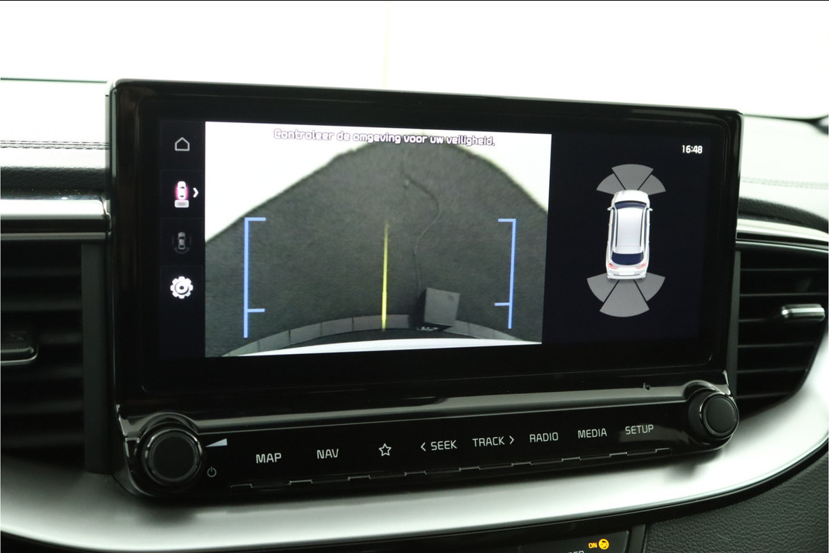 Het digitale dashboard rekent mee, denkt mee en rijdt mee. Alle info overzichtelijk in beeld, overal. Niets achter deze auto blijft verborgen door de achteruitrijcamera. Een veilig gevoel! Met adaptive cruise control houdt de auto zelfstandig afstand tot uw voorligger. Een veiligheidsverhogende optie waarmee u comfortabel onderweg bent. De ingebouwde file assistent is een echte helper als het vaststaat onderweg. Het systeem meet ruimte tot de auto vóór u permanent en activeert zelfs de remmen als uw voorligger stopt. In het zeldzame geval van een storing weet u nog eerder dan de monteur wat er mankeert. Uw smartphone met remote services geeft direct inzicht. De uitrusting van deze Kia is met dashboard met spraakbediening, full map navigatiesysteem, electronic climate control, schakelpaddles aan het stuur, draadloos opladen en DAB ontvangst behoorlijk compleet.