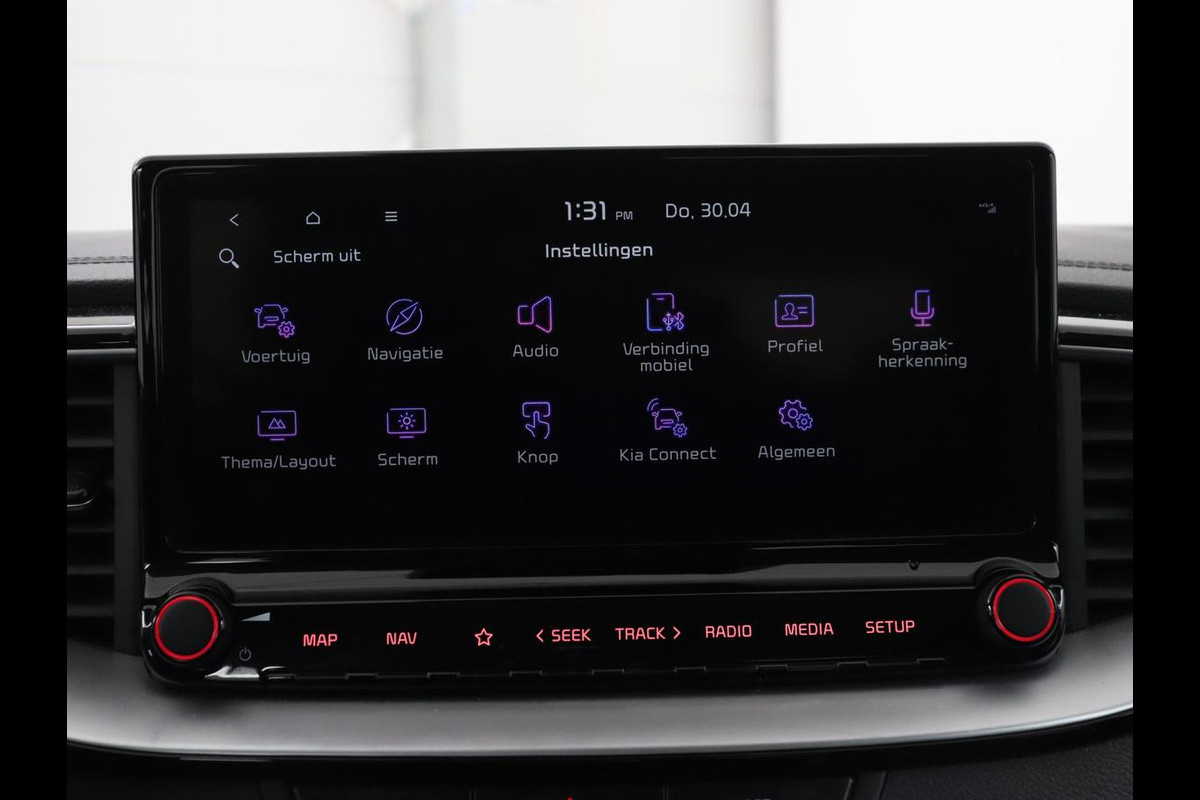 Comfortabel en veilig achteruitrijden gaat gemakkelijker dan ooit met behulp van de achteruitrijcamera. In deze auto wordt u elke rit opnieuw bijgestaan door een gebruiksvriendelijk full map navigatiesysteem, terwijl u luistert naar het glasheldere geluid van het audio-installatiesysteem met DAB-radio. De automatische airconditioning zorgt voor een prettige binnentemperatuur. De elektronische systemen in deze Kia helpen u actief om comfortabeler te rijden. Een automatisch inschakelbare verlichting en een regensensor houden de omstandigheden onderweg in de gaten. Ook op de korte stukken is de cruise control een uitkomst. Kijk maar bij de benzinepomp! De uitrusting van deze Kia is met dashboard met spraakbediening, keyless entry, automatisch dimmende binnenspiegel, lederen stuur en lederen versnellingspook behoorlijk compleet.