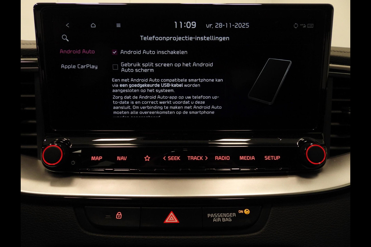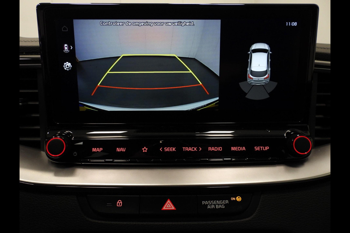 Met behulp van de achteruitrijcamera kunt u zo strak inparkeren als u maar wilt! U bedient het full map navigatiesysteem en het audio-installatiesysteem met DAB-radio via knoppen op het stuur, of zelfs met uw stem. Zo kunt u steeds uw aandacht gericht houden op de weg. Met de climate control selecteert u de gewenste temperatuur. Het systeem doet de rest. Het drukke verkeer eist onderweg al uw aandacht op. Daarom is het goed dat deze Kia is voorzien van diverse systemen die u assisteren tijdens de rit. Een automatisch inschakelbare verlichting neemt het waar als het donker wordt of gaat schemeren, en schakelt dan automatisch de verlichting in. Op dezelfde manier "ziet" de regensensor de eerste spatjes regen en schakelt dan de ruitenwissers in, en als het harder gaat regenen zet hij de ruitenwissers ook in een snellere stand. Een heerlijke egale snelheid? Even de cruise control inschakelen! Deze auto is voorzien van keyless entry, automatisch dimmende binnenspiegel, isofix-aansluiting, centrale deurvergrendeling met afstandsbediening en lederen versnellingspook.