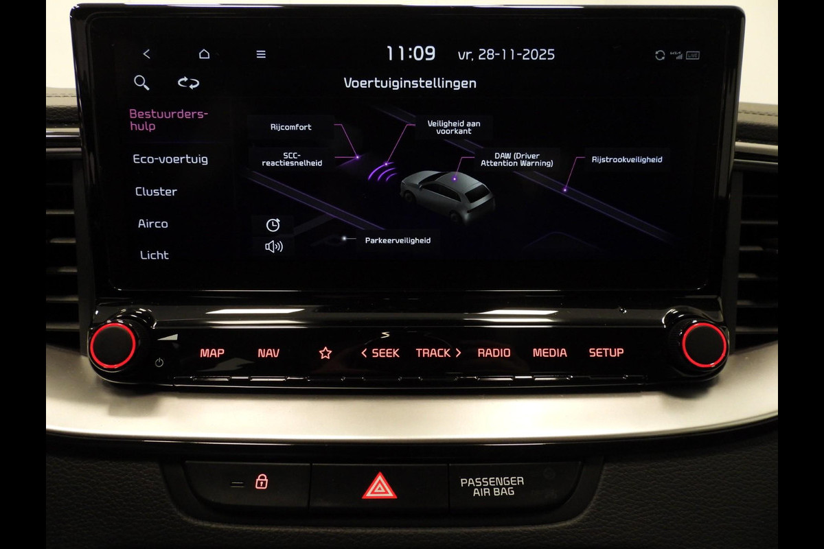 De geavanceerde technologie in deze Kia is in staat om onderweg het verkeer om u heen te monitoren en er op te reageren. Zo hebt u als het ware een automatische co-piloot aan boord. Het Lane-keeping systeem doet precies wat nodig is: waarschuwen en corrigeren bij onbedoelde overschrijding van de rijstrooklijnen. Botsingen met een voorligger gebeuren relatief vaak. De forward collision warning slaat tijdig alarm als dat risico ontstaat, zodat u kunt ingrijpen. Vermoeid achter het stuur zitten vergroot de kans op een ongeval. Vermoeidheidsherkenning waarschuwt tijdig als u aan een rustpauze toe bent. De veiligheid van deze auto wordt verder verhoogd door hill hold functie, autonoom remsysteem en bandenspanningcontrolesysteem.