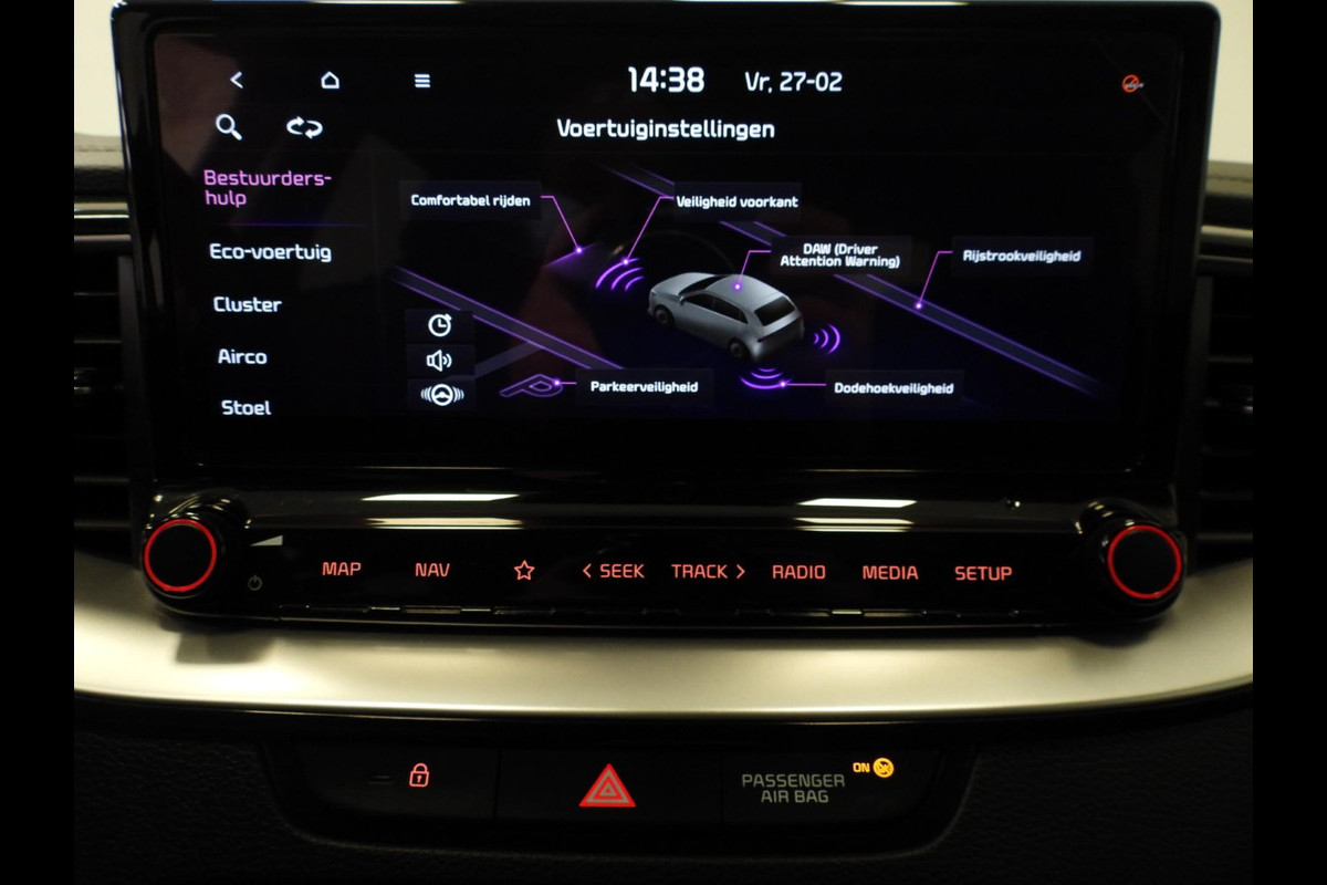 In één oogopslag zijn alle vitale functies afleesbaar dankzij het digitale dashboard. Overzichtelijk en veilig parkeren met de achteruitrijcamera. Overal en altijd. Met adaptive cruise control houdt de auto zelfstandig afstand tot uw voorligger. Een veiligheidsverhogende optie waarmee u comfortabel onderweg bent. Filerijden? Doodvermoeiend. Daarom helpt de file assistent zo nodig een handje. Door automatisch afstand te houden, en te stoppen als uw voorligger stilstaat. Het is veiliger om altijd uw ogen op de weg te houden en uw handen aan het stuur; daarom is dit voertuig uitgerust met een audio-installatiesysteem met DAB-ontvangst en een full map navigatiesysteem dat kan worden bediend via het stuurwiel of spraakbediening. Deze Kia is voorzien van kruisend verkeer detectie, climate control, draadloos opladen, regensensor, keyless entry en automatisch dimmende binnenspiegel.