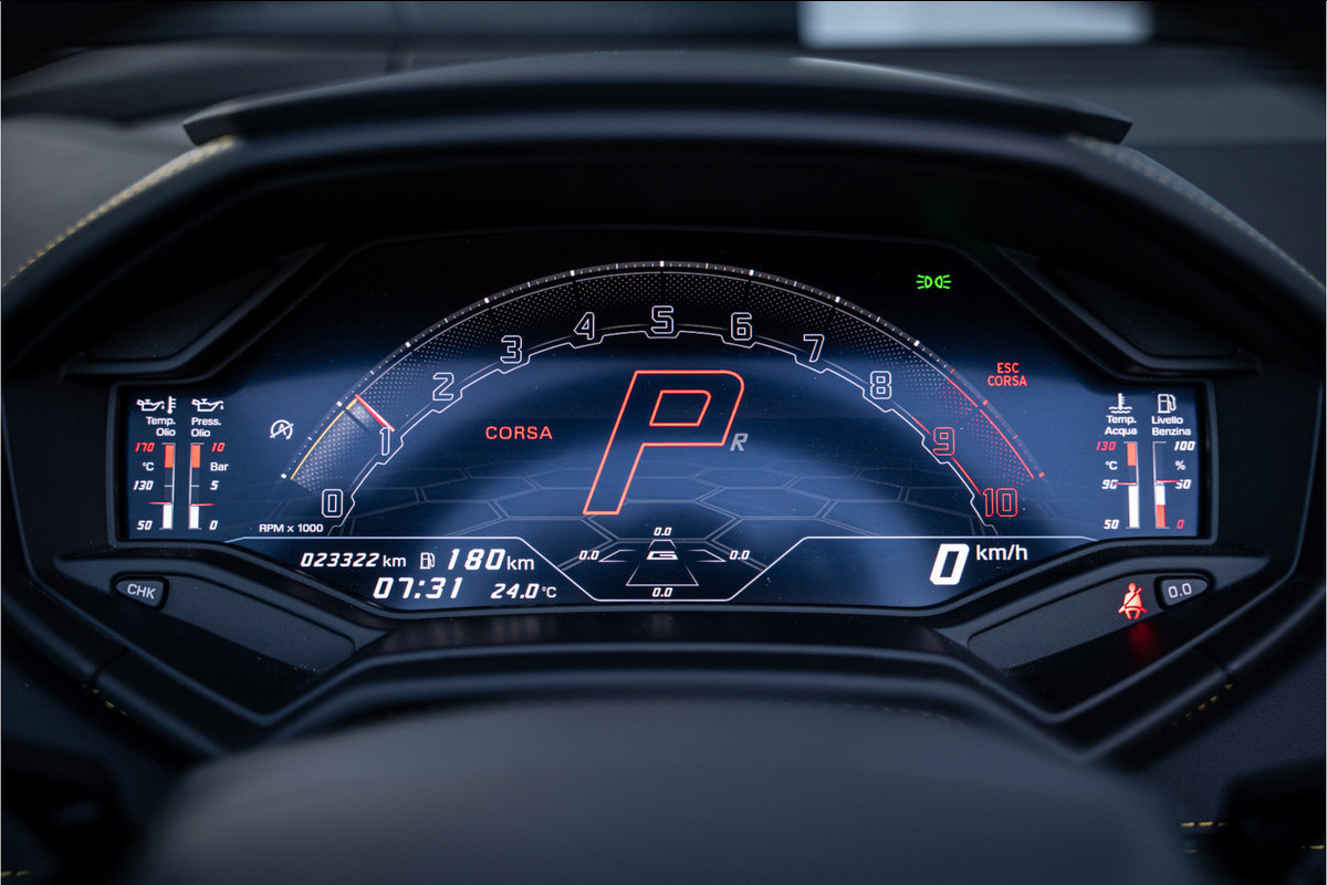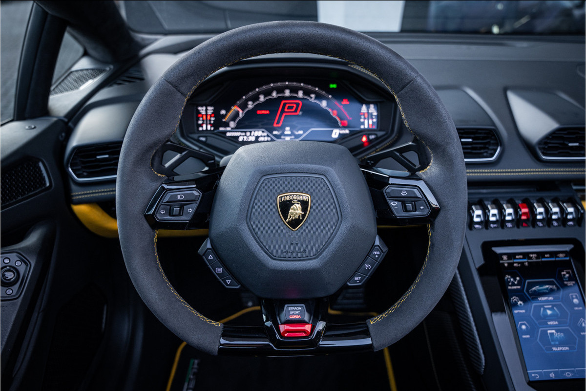 Zodra de zon zich laat zien, kunt u heerlijk genieten achter het stuur van deze cabriolet. Dit is een auto die is ontworpen voor uw comfort. Deze Lamborghini Huracán Evo Spyder is van het bouwjaar 2019. De auto heeft een opmerkelijk lage kilometerstand van slechts 23322 De uitstekende prestaties van deze auto komen van de tiencilinder benzinemotor en de automatische transmissie. De auto is uitgerust met lederen bekleding. Met deze auto gaat open rijden wel heel erg eenvoudig: het elektrische dak opent of sluit met een druk op de knop. Tot de uitrusting van deze Lamborghini behoren ook 20 inch lichtmetalen velgen, adaptief dempingsysteem en variabele stuurbekrachtiging.