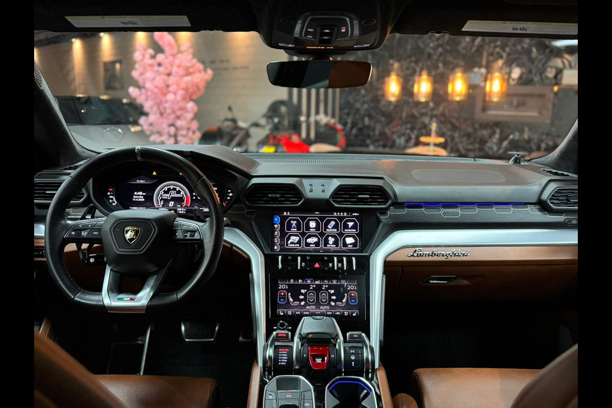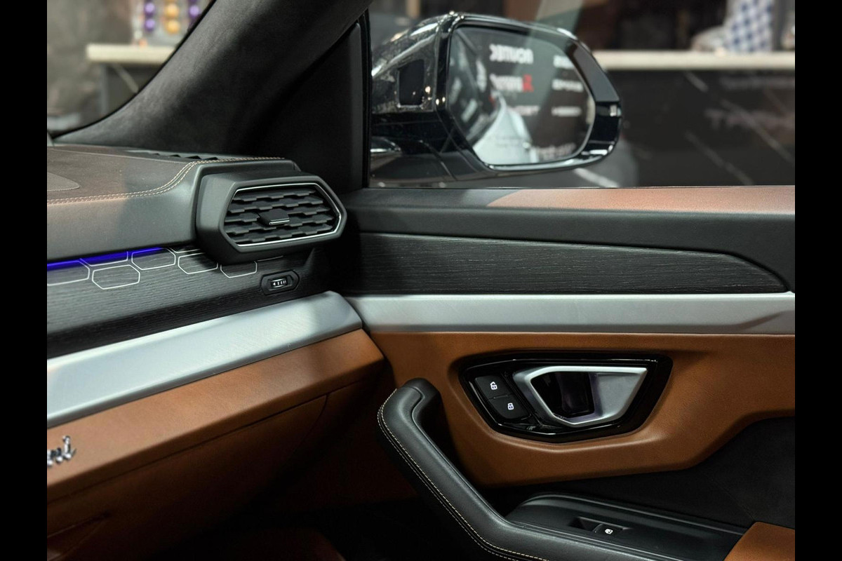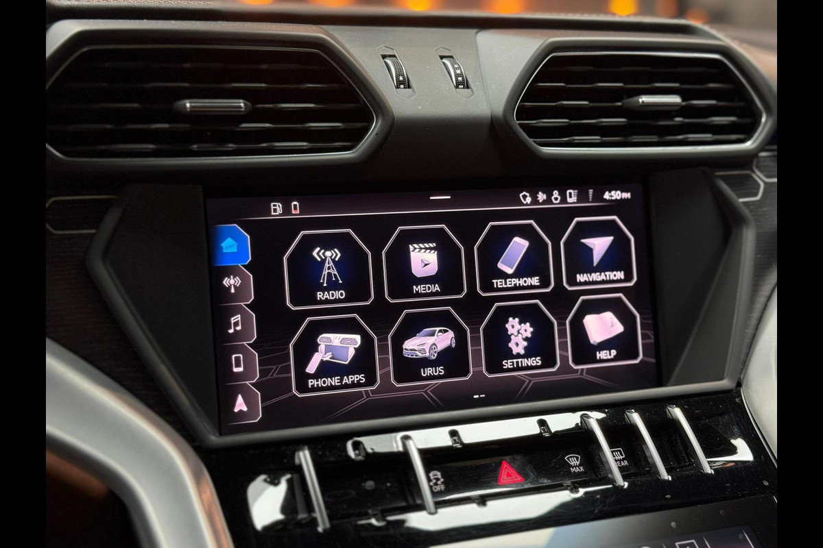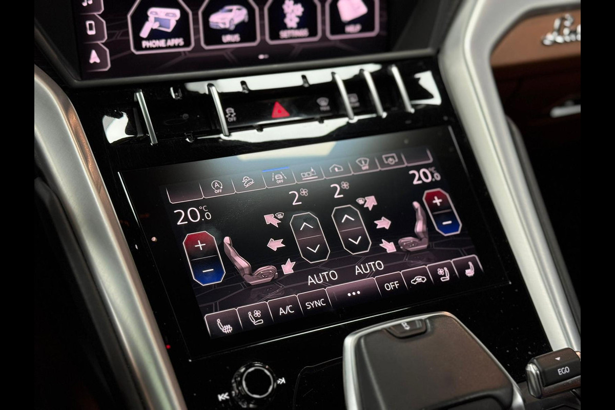 Zoals u mag verwachten van deze Lamborghini Urus is hij uitgerust met een reeks aan actieve veiligheidssystemen. Het Lane-keeping systeem garandeert dat u zich niet onverhoeds buiten de lijnen van de rijstrook begeeft. Botsingen met een voorligger gebeuren relatief vaak. De forward collision warning slaat tijdig alarm als dat risico ontstaat, zodat u kunt ingrijpen. Een ongeluk zit in een klein hoekje. Het accident avoidance system kijkt met u mee en helpt om ongevallen te voorkomen. In deze Lamborghini vinden we verder een head-up display en bandenspanningcontrolesysteem.