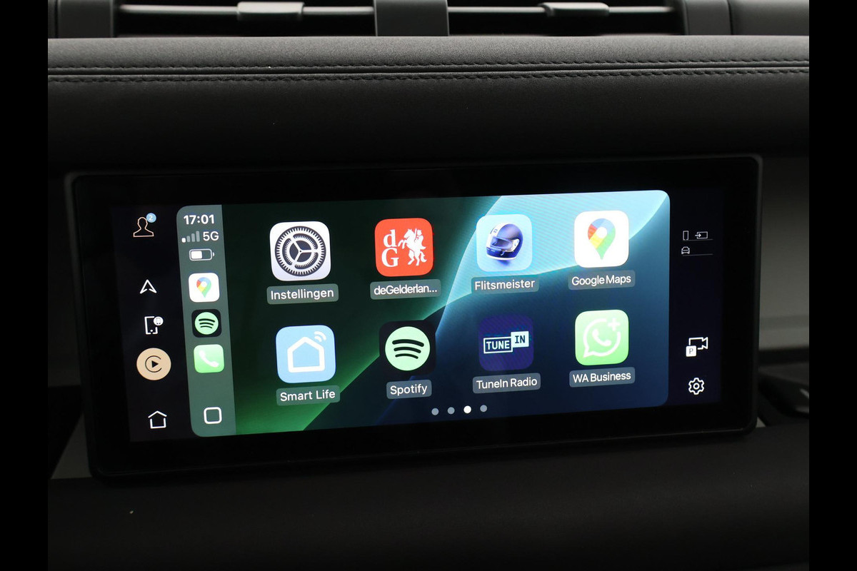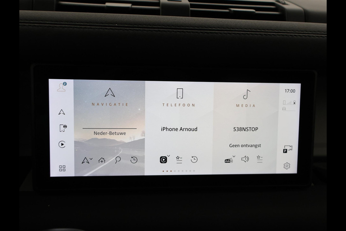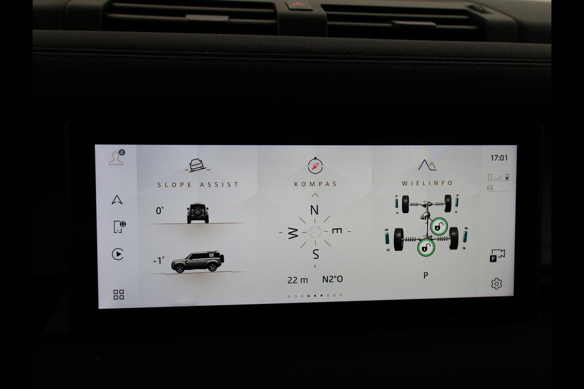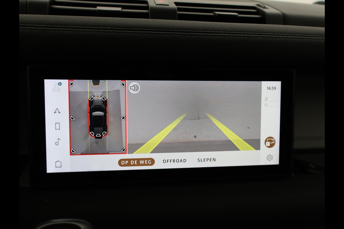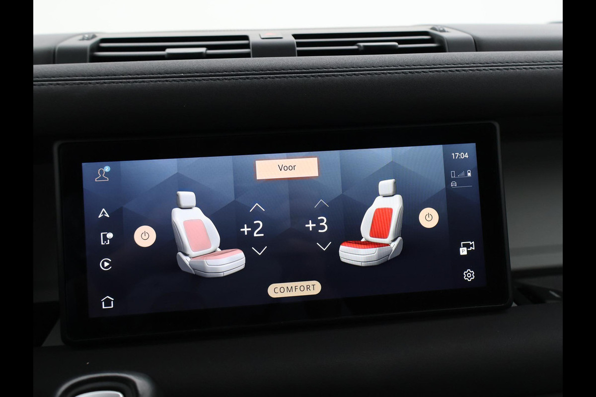 Defender 110 grijs kenteken met 2 zitplaatsen, Gondwana Stone Gloss exterieurkleur met zwart dak, zwarte spiegels en zwarte velgen, Panorama schuif/kanteldak, 360 graden camerasysteem, Stoelverwarming, Stuurwielverwarming, Koelkast in de middenarmsteun, Volledig elektrisch wegklapbare trekhaak met 3500 kg trekgewicht op kenteken, Luchtvering met regelbare rijhoogte, Keyless-entry en keyless-drive, Spiegel met achteruitrijcamera functie en spiegelfunctie, Meridian Premium sound, 19 inch lichtmetalen velgen, Full LED koplampen, LED achterlichten, Digitale cockpit met digitale tellers en navigatie kaartweergave + mediaweergave beeldvullende modus, Profiglass dubbel cabine ombouw met Defender inscriptie in het tussenschot, Draadloze Apple Carplay / Android Auto appstreaming Google Maps, Flitsmeister, Spotify etc, DAB+ Digitale radio, Lijnassistentie, Keyless-entry en keyless-drive, Draadloze telefoonlader, Botswaarschuwing, Cruise control, Elektronisch verwarmde voorruit, Climate control, USB 2 en USB C laders, D240 2.0D Ingenium 240 PK diesel automaat 4x4. Elektronisch sperdifferentieel achter met koppelverdeling dmv remmen (TVBB). Prijs is exclusief BTW.