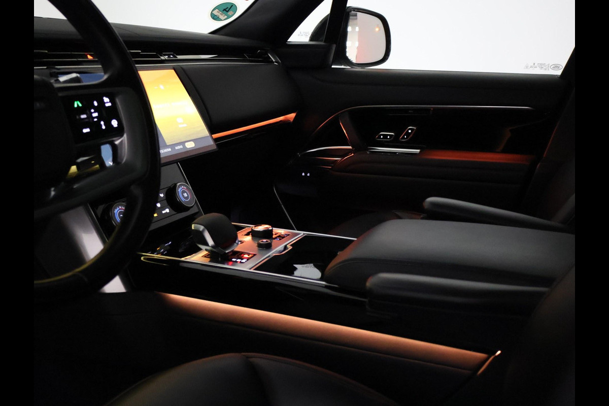 300D 3.0 6-cilinder diesel met 300 PK en 8-traps automaat, BTW verrekenbaar, Nieuw model in de HSE uitvoering met vierwielsturing, Shadow Exterieurpakket met donkere sierlijsten rondom, Panorama schuifdak, Massagestoelen, Elektrische stoelverstelling voor + achterin, 5-persoons uitvoering, Elektrisch wegklapbare trekhaak met 3500 kg trekgewicht, Stoelventilatie voor + achter, Stoelverwarming voor + achterin, 22 inch velgen, Privacy glass, Luchtvering, Apple Carplay / Android Auto, Koelbox in de middenarmsteun, Extra gelaagd glas, Navigatie groot scherm, Digitale cockpit / tellers, Full LED voor en achter, Verwarmd stuurwiel, 360 graden camera surround view, Achteruitkijkspiegel met cameramodus, Santorini Black metallic exterieurkleur, Semi Aniline geperforceerd leder interieur Morzine / zwart. Interieurstyling inleg Grand Black Wood pakket, Sfeerverlichting interieur met verschillende kleuren, Elektronisch verwarmde voorruit, Meridian 3D Sound, Elektrische achterklep, 4 zone climate control.