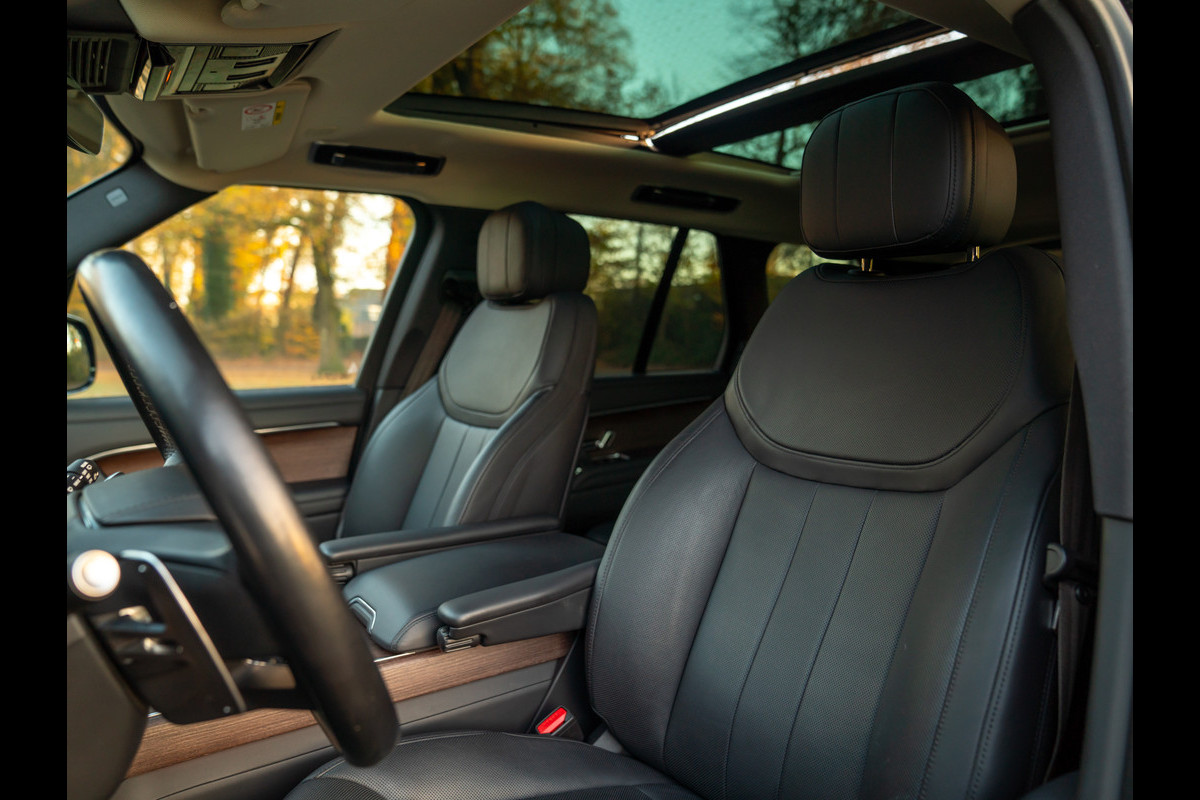 Het “King of the Road” gevoel was zelden zo sterk als in deze schitterende Range Rover P440e SE. Geen wonder dat de voormalig eigenaar groot fan is! Hij ruilde zijn topklasse SUV bij ons in op een nieuw exemplaar. Voor u een uitgelezen kans om te proeven van het unieke karakter van het absolute topmodel uit de Land Rover line-up. De uitrusting is haast net zo riant als de omvang van onze Range Rover PHEV: een elektrisch bedienbaar panoramadak, stoelverwarming voor + achter, Adaptive Cruise Control, een Surround View Camera en Meridian audio met Apple CarPlay / Android Auto zijn bijvoorbeeld inbegrepen. Fraai is ook de kleurstelling: Santorini Black lakwerk gecombineerd met zwart lederen bekleding, een houten interieurfinish en Exterior Pack Nickel Atlas geven de chique en statige Brit een extra vleugje flair. Bovendien ademt elk detail high-end kwaliteit en is alles op maximaal comfort gericht. Tot en met de aandrijflijn aan toe: de 440 pk sterke Plug-in Hybride 6-clinder lijnmotor is namelijk een toonbeeld van souplesse. In EV-modus komt de Range Rover P440e SE tot wel 113 km ver, geheel emissievrij. Tel daarbij op de actieradius van de brandstofmotor, en in theorie hoeft de luxe SUV minder vaak een bezoek te brengen aan de pomp dan een Fiat Panda. Echter, daar doet u het uiteraard niet voor. Maar misschien wel voor de 8 automatische versnellingen die haast naadloos in elkaar overlopen. Of voor de ongekende terreincapaciteiten waardoor het “King of the Road” gevoel op elke ondergrond standhoudt…