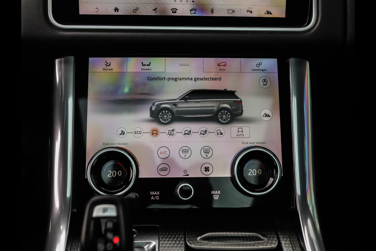 The digital cockpit allows you to fully personalise your driver interface. The rear-view camera is a welcome feature, providing a clear view behind without any hassle. Adaptive cruise control automatically maintains a safe distance from the vehicle ahead, adding comfort and peace of mind. Via the Connected Services app, you instantly have access to all key vehicle information. And with the high-performance audio system, every journey becomes a pleasure to listen to. This Land Rover also comes equipped with voice-controlled instrumentation, full-map navigation, electronic climate control, a sports steering wheel with shift paddles, rain sensor and keyless entry.