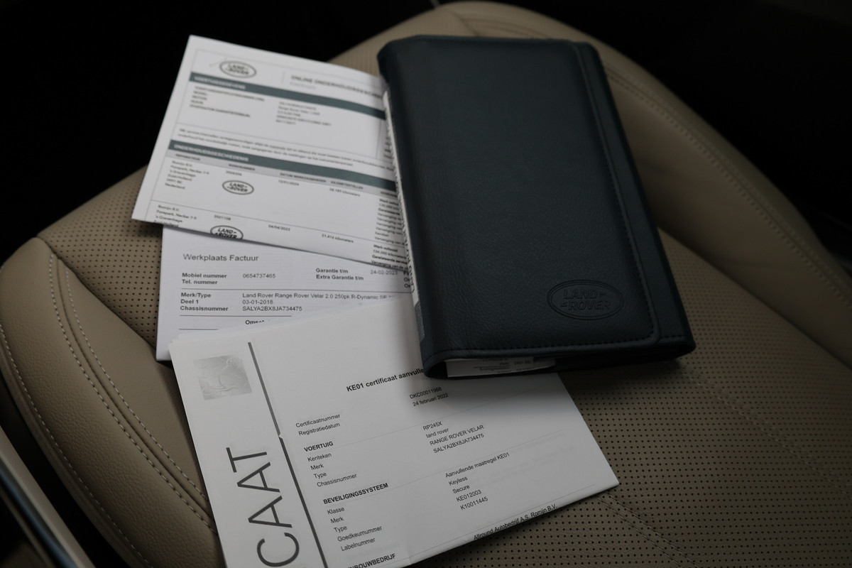 Bij het ontwerpen van de Land Rover Range Rover Velar stonden uw comfort en uw veiligheid centraal. Deze Range Rover Velar is van het bouwjaar 2018. Met zijn benzinemotor en automatische transmissie is dit een prima auto voor nog vele kilometers. Laat de zon maar schijnen door het elektrisch bediende glazen panorama dak en hou een handje over dankzij de elektrisch bedienbare achterklep. Niks vergeten? O ja toch: het lederen interieur moeten we zeker even noemen. Een weldaad voor uw rug en die van uw bijrijder: deze Land Rover Range Rover Velar heeft verwarmbare voorstoelen met massagefunctie. Neem plaats op de comfortabele stoelen. Dankzij de elektrische bediening en het geheugen is het eenvoudig om hierin de beste zitpositie te vinden. De koplampen met matrix LED-verlichting geven daglichtkwaliteit zonder tegenliggers te hinderen. In deze auto profiteert u onder andere ook van: 21 inch lichtmetalen velgen, adaptief dempingsysteem, trailer assistent, donker getint glas achter, in delen neerklapbare achterbank en LED-achterlichten.