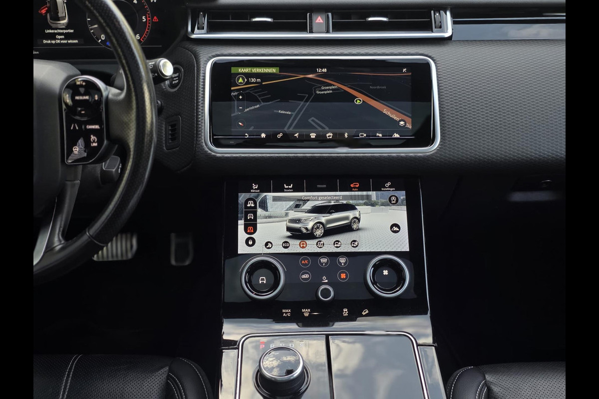 Met het digitale dashboard in deze auto kunt u de interface van uw cockpit personaliseren. De achteruitrijcamera geeft u duidelijk zicht op de ruimte achter de auto. Met adaptive cruise control houdt deze auto automatisch afstand tot uw voorligger. De auto is voorzien van een trekhaak en is een uitstekende caravantrekker. Deze Land Rover Range Rover Velar is 'connected'. Belangrijke functies worden permanent gemeten en zijn uit te lezen via een speciale app, ook op afstand. Wat u ook in deze auto kunt vinden zijn premium audiosysteem, navigatiesysteem, achteropkomend verkeer waarschuwing, electronic climate control, regensensor en keyless entry.