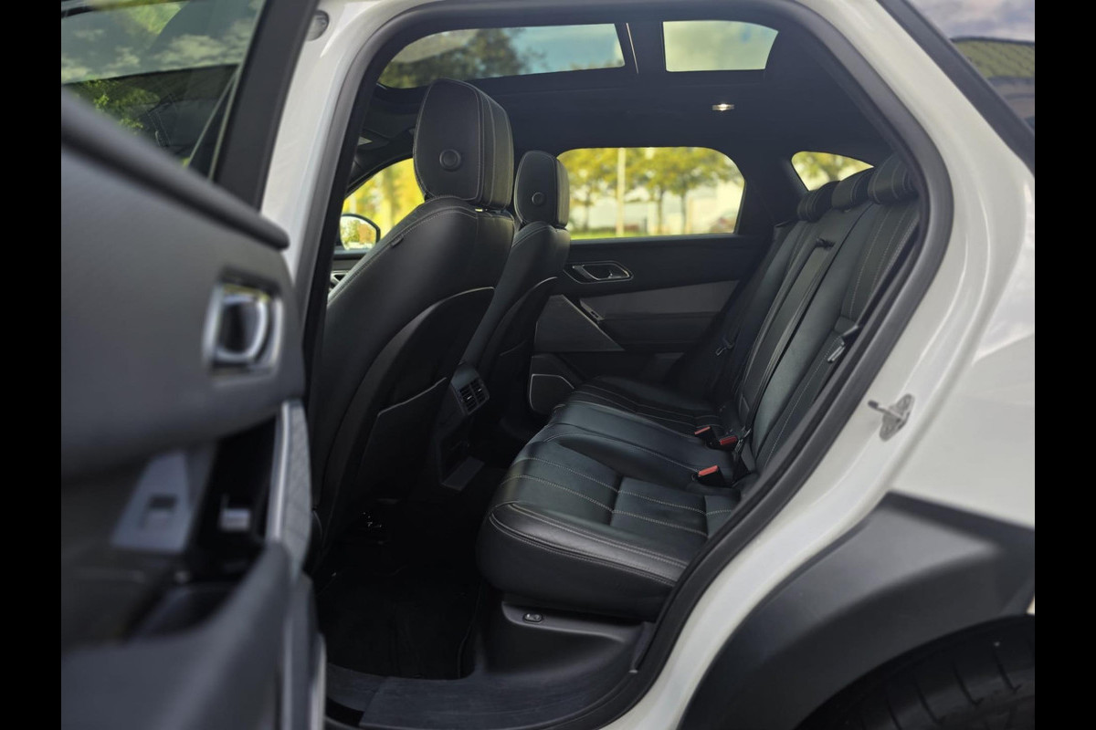 Bij het ontwerpen van de Land Rover Range Rover Velar stonden uw comfort en uw veiligheid centraal. De aandrijving van deze Land Rover wordt verzorgd door een zescilinder motor en een automatische transmissie. Dankzij de automatische luchtvering behoudt u altijd een comfortabele rit, ongeacht de staat van het wegdek. Met zijn lederen bekleding is deze auto comfortabel en stijlvol. Lang onderweg zijn kan een behoorlijke uitdaging zijn voor rug en schouders. Daarom zijn de verwarmbare voorstoelen voorzien van een weldadige massagefunctie. Dankzij de elektrische stoelbediening is het gemakkelijk om de optimale zitpositie te vinden. Het elektrisch bediende glazenpanorama dak zorgt voor licht en gevoel van ruime. Een praktische extra is de elektrisch bedienbare achterklep die opent en sluit met een druk op de knop. Tot de uitrusting behoren ook verwarmd stuurwiel, 21 inch lichtmetalen velgen, LED matrix verlichting, trailer assistent, extra getint glas en in delen neerklapbare achterbank.
