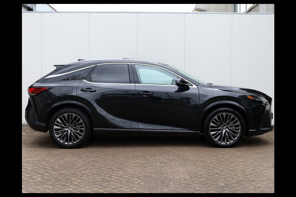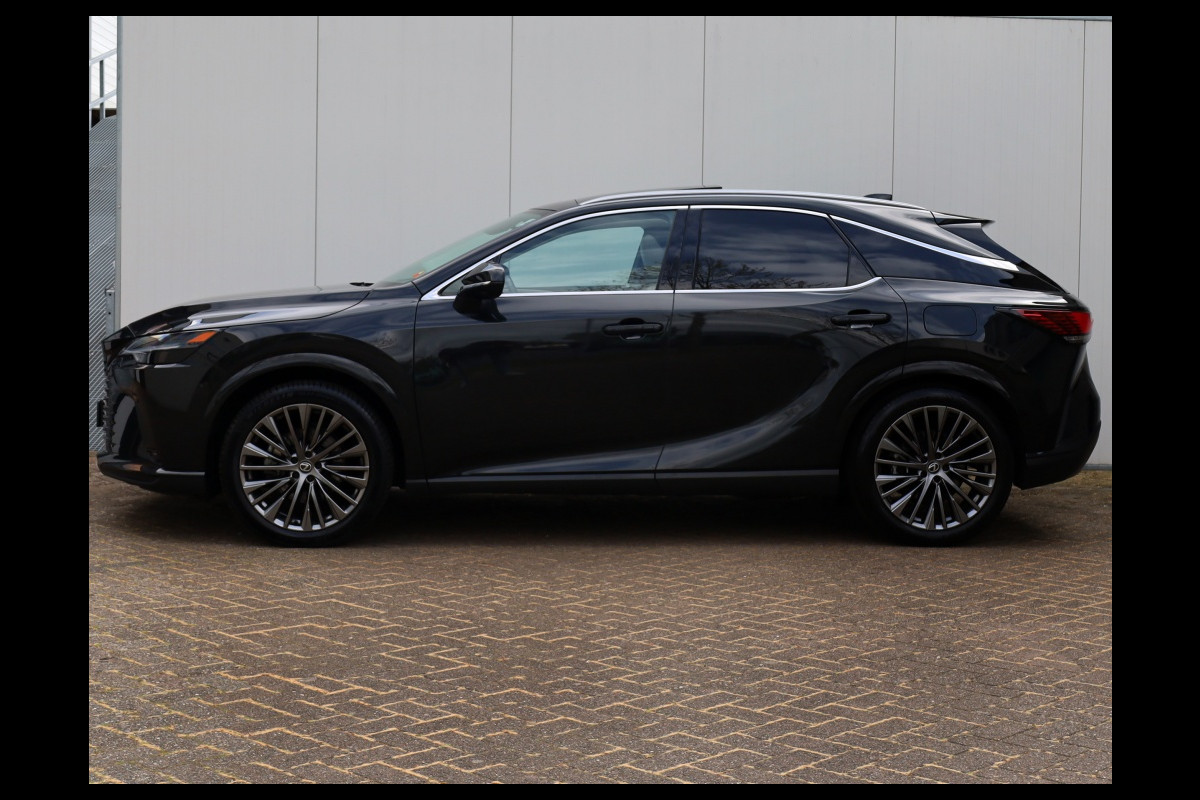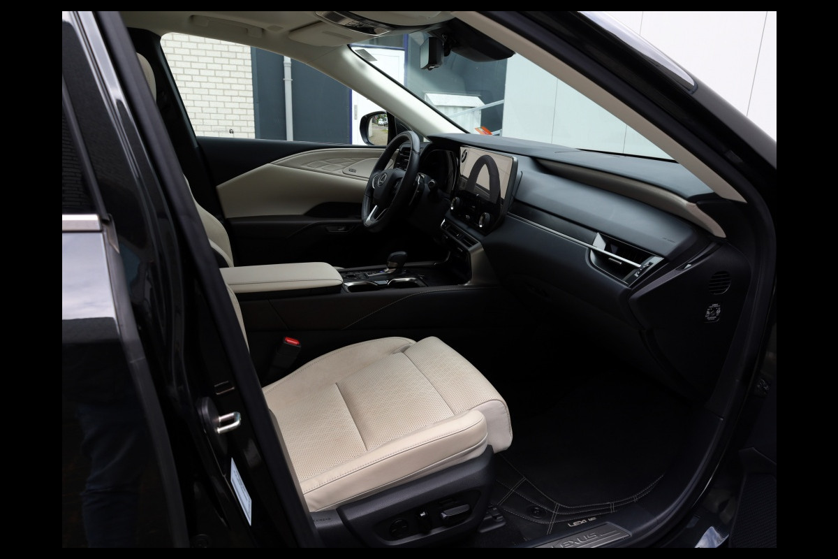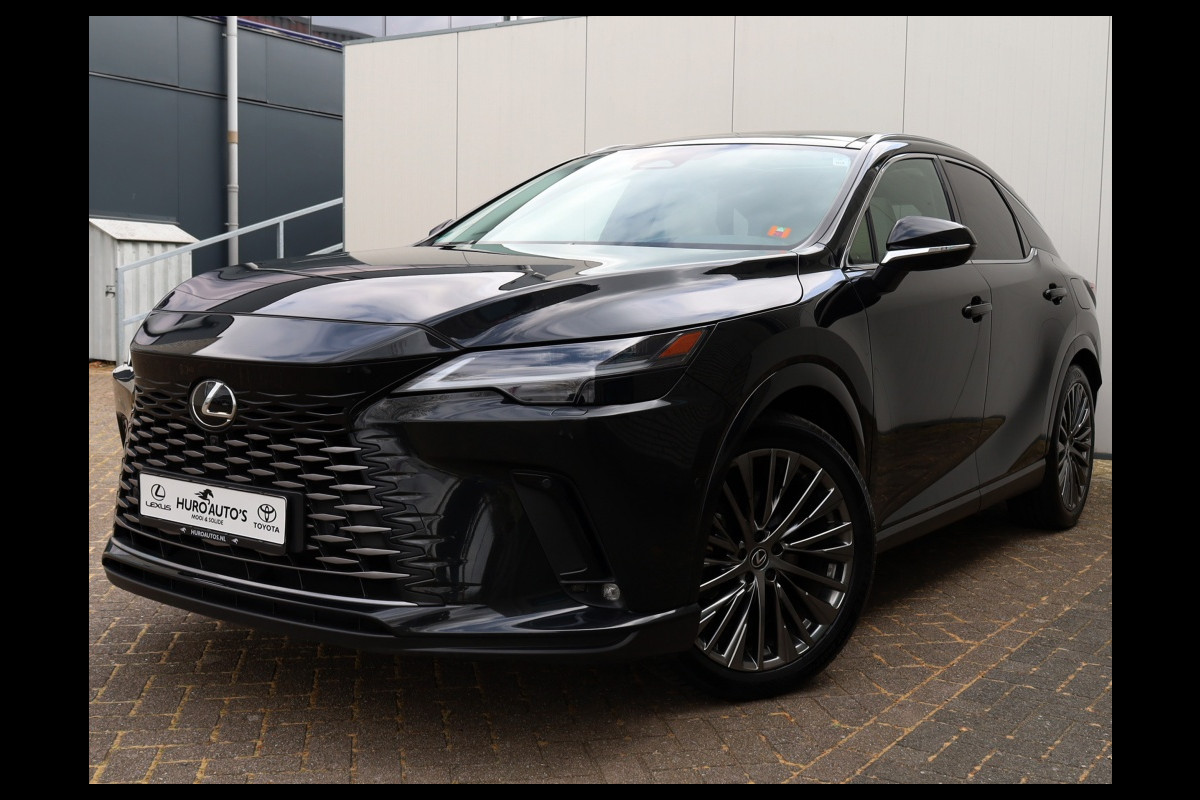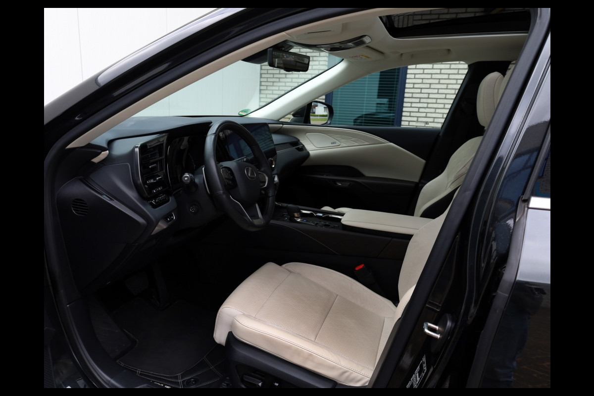 Prachtige, super luxe, premium SUV. Deze schitterende bolide is afkomstig van de eerste eigenaar. Rijden in deze Lexus RX is een rustgevende relaxte ervaring. De rust en stilte aan boord in combinatie met het heerlijke adaptieve onderstel zorgen voor een ongeëvenaard comfort. Bovendien geniet u van uw favoriete muziek die fantastisch wordt weer gegeven door het onvolprezen Mark Levinson audiosysteem. Het ontbreekt u verder aan niets, alle opties zijn aan boord. De auto heeft een geweldige uitstraling in Graphite Black metallic met originele 21" Dark premium metallic velgen. Het hoogwaardig afgewerkte en smaakvolle interieur in Ammonite Sand maakt het geheel compleet. De moderne plug-in hybride aandrijflijn biedt het beste van twee werelden. U kunt zowel elektrisch als hybride rijden met deze Lexus. Daarbovenop is hij met zijn trekgewicht van 2000 kg bij uitstek geschikt om een trailer of caravan te trekken. Deze auto heeft zeer recent de 60.000 km beurt bij Lexus gehad. Factuur daarvan is aanwezig. GRATIS 12 MAANDEN BOVAG GARANTIE, BEURT, TENAAMSTELLING EN NIEUWE APK! Bovendien kunt u gebruik maken van tot 10 jaar Lexus Relax garantie. Bent u geïnteresseerd in deze auto, neem dan gerust contact met ons op voor een bezichtiging en/of overtuigende proefrit.