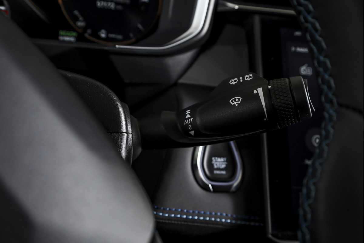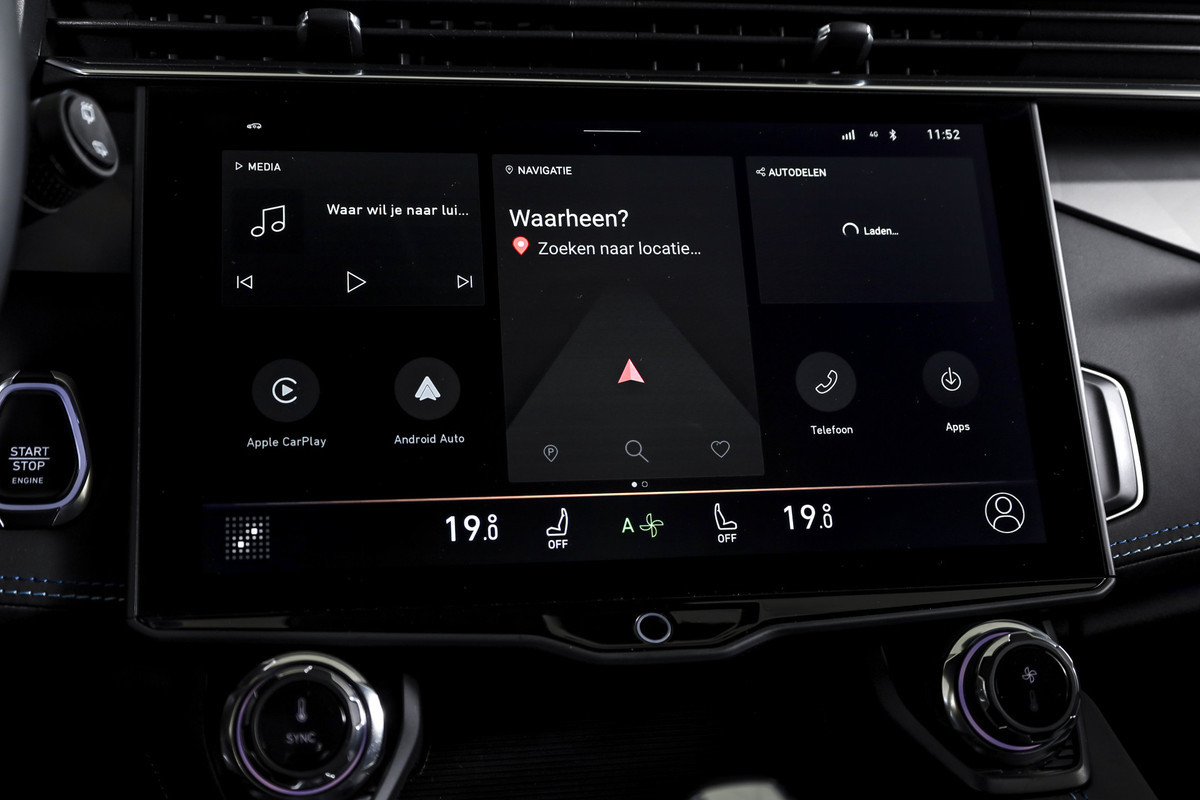 Binnenin valt direct het volledig digitale instrumentenpaneel op dat alle belangrijke rijinformatie helder weergeeft. Het navigatiesysteem full map zorgt voor duidelijke routebegeleiding, terwijl Apple CarPlay/Android Auto verbinding maakt met je smartphone.