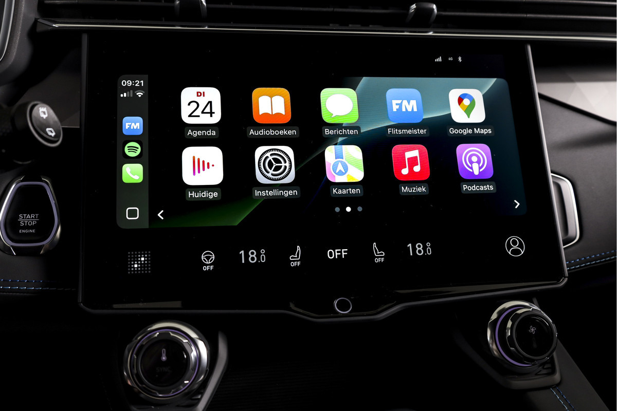 Binnenin valt direct het volledig digitale instrumentenpaneel op dat alle belangrijke rijinformatie helder weergeeft. Het navigatiesysteem full map zorgt voor duidelijke routebegeleiding, terwijl Apple CarPlay/Android Auto verbinding maakt met je smartphone.
