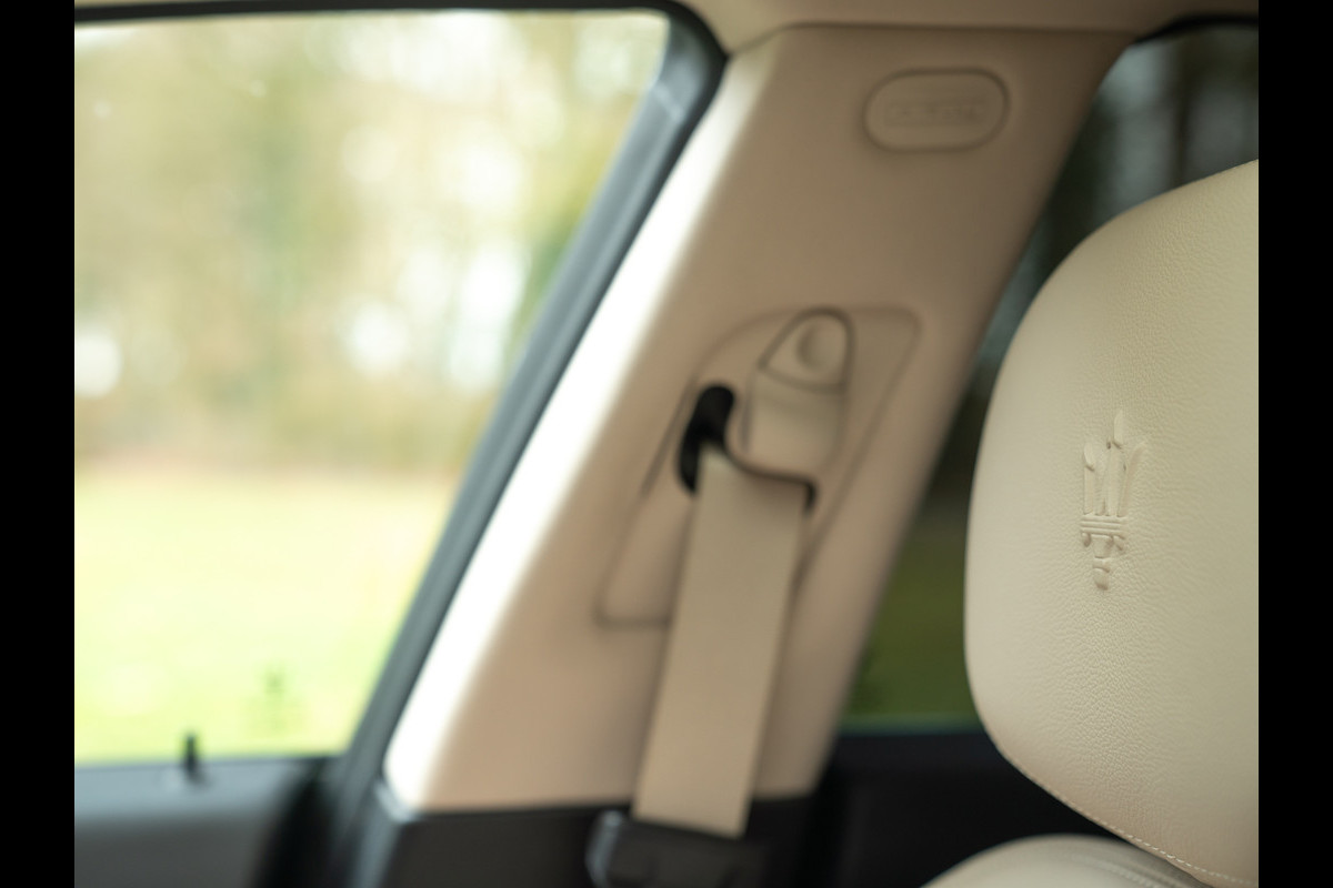 Autoliefhebbers hebben er doorgaans een handje van de boel te romantiseren wanneer ze fantaseren over een droombolide voor alledaags gebruik. Zo ook de voormalig eigenaar van deze prachtig mooie Maserati Ghibli 3.0 V6 met 350 pk aan Bi-Turbo “benzina pura” power. De Italiaanse Tridente werd begin dit jaar op zijn verzoek door ons opgespoord; het exemplaar sprong eruit vanwege zijn fantastische staat en chique specificatie. De geweldige zorg en aandacht die uitging naar de zoektocht bleek een voorbode op de omgang en het onderhoud van de Ghibli V6 tijdens gebruik. Uiteindelijk ging dit de eigenaar in de weg zitten; hij was simpelweg té zuinig op zijn Maserati om er dagelijks mee de weg op te sturen. Om te voorkomen dat het een lijdensweg werd, besloot hij zijn droomauto opnieuw bij ons aan te bieden, en er een andere liefhebber mee blij te maken. Immers, blij wordt u natuurlijk sowieso van dit stijlicoon in 4-deurs configuratie: het elegante Nero Assoluto lakwerk gecombineerd met licht Sabbia leder maken de luxe sportsedan smaakvoller dan smaakvol. Het uitrustingsniveau kan dan uiteraard niet achterblijven en omvat onder andere een Premium Pack, Business Pack Plus en stoelverwarming. Wie gaat de Ghibli 3.0 V6 met fluwelen handschoenen aanpakken en durft het desondanks aan om deze zwarte parel binnen 5,5 seconden van 0 naar 100 km/h te laten accelereren?