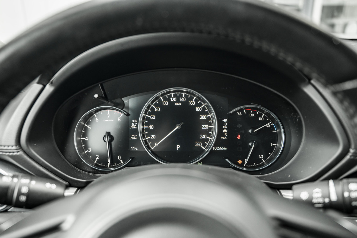 Met het digitale dashboard in deze auto kunt u de interface van uw cockpit personaliseren. Met de hulp van vier camera's, biedt de 360 graden camera op deze auto een panoramisch zicht, wat bijzonder nuttig is bij het parkeren en manoeuvreren. Muziek luisteren wordt genieten met het high performance audiosysteem. Bij het wisselen van rijbaan kan een dode hoek ontstaan waardoor achterliggers te dichtbij kunnen komen. De achteropkomend verkeer waarschuwing geeft in dat geval automatisch een signaal. Electronic climate control verwarmt of koelt het interieur met een druk op de knop. De Mazda is standaard voorzien van: dashboard met spraakbediening, full map navigatiesysteem, DAB ontvangst, regensensor, cruise control en keyless entry.