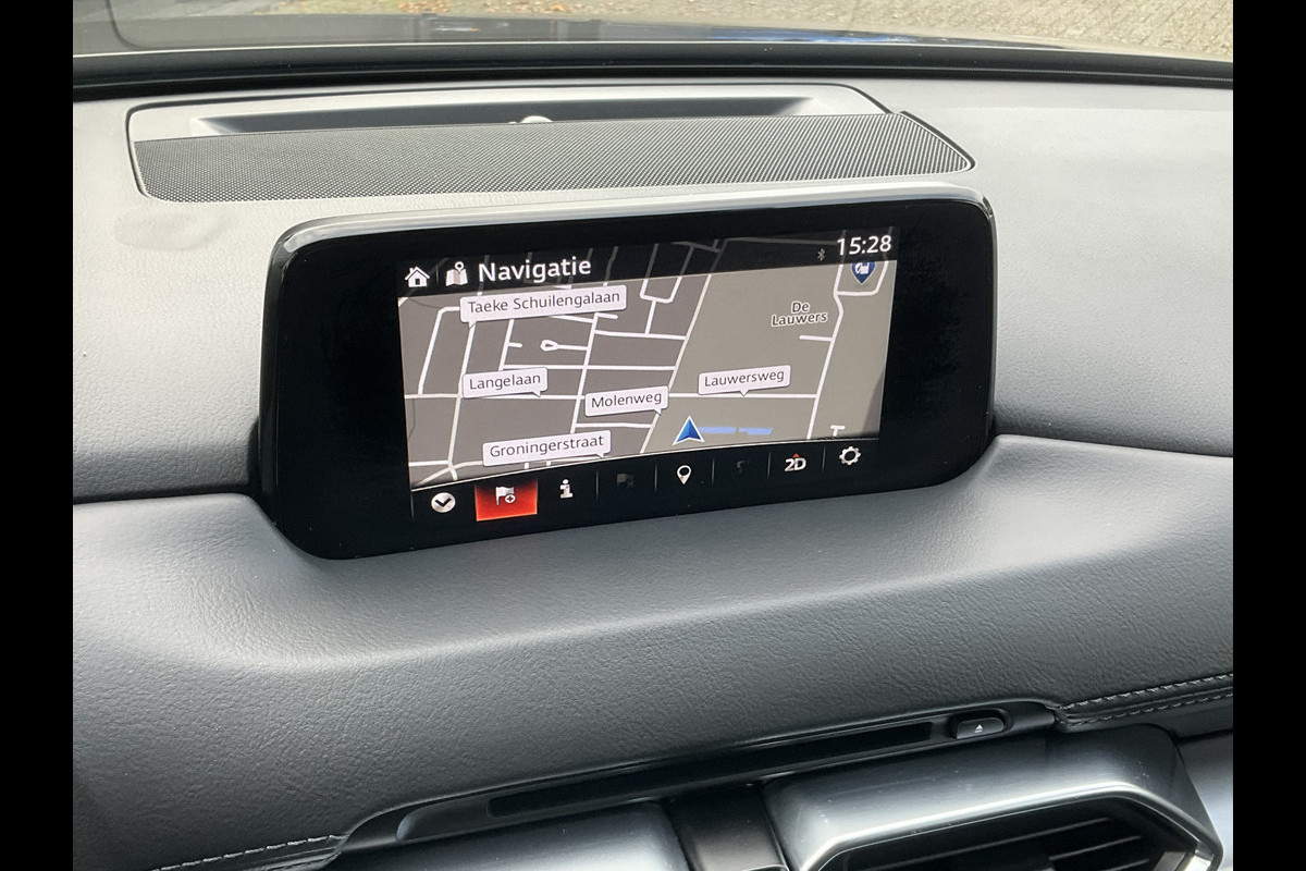 De vier camera's genereren samen een 360 graden beeld rond de auto, zodat u een volledig overzicht hebt van wat er rondom uw auto gebeurt. De high-end technologie van het high performance audiosysteem staat garant voor geluid van het hoogste niveau. De sensoren van de achteropkomend verkeer waarschuwing houden zicht op de dode hoeken achter u. Te weinig afstand tot de achterligger? Het systeem geeft direct een signaal. Natuurlijk is er ook automatische airconditioning aanwezig. Hoeveel ruimte u nog heeft bij het insteken? De parkeersensoren laten het weten! Da's gemakkelijk! Met dashboard met spraakbediening, full map navigatiesysteem, DAB ontvangst, regensensor, cruise control en keyless entry is deze Mazda helemaal compleet.