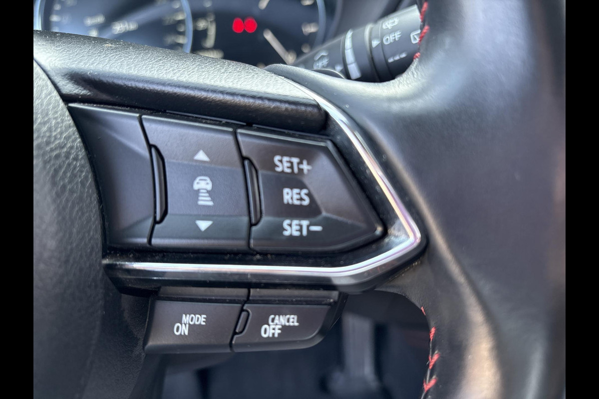 - Mazda Radar Cruise Control (MRCC): houdt ingestelde snelheid aan en bewaart gewenste afstand tot voorganger (incl. stop & go-functie)