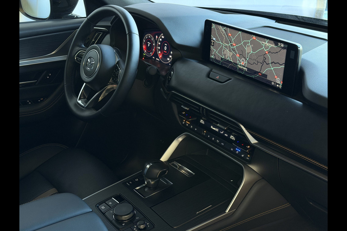 De Mazda CX-60 Homura heeft dankzij extra voorzieningen een sportieve uitstraling. De stoelen van zwart leder, de sfeerverlichting en vloerverlichting achterin maken het interieur zo aantrekkelijk dat je altijd weer graag achter het stuur wilt kruipen.