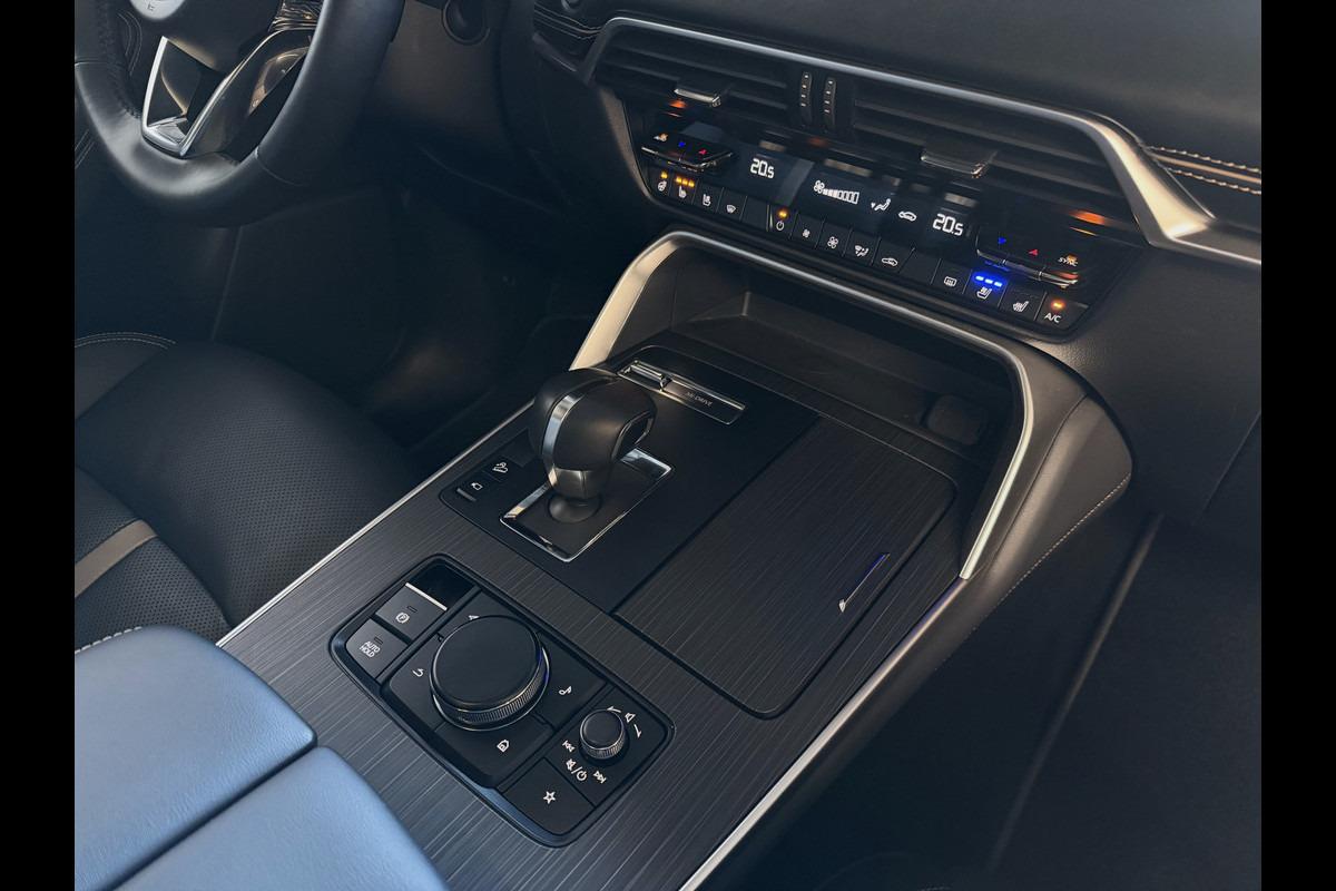 Met Mazda's eerste plug-in hybride (PHEV) kunt u volledig elektrisch rijden tijdens uw dagelijkse ritten. Met één druk op de knop bent u vertrokken. Deze Mazda CX-60 heeft zowel een benzinemotor als een batterij-aangedreven elektromotor. U beschikt dus over twee krachtbronnen die u maximale flexibiliteit bieden. En u hoeft niet bang te zijn dat u zonder stroom valt. Dit uitermate zuinig plug-in hybride aandrijfsysteem is gekoppeld aan een nieuwe 8-traps automatische transmissie die speciaal werd ontwikkeld voor sneller optrekken, minder uitstoot en vlotter schakelen. De E-SkyActiv PHEV aandrijving beschikt over maar liefst 327 pk vermogen. De viercilinder benzinemotor wordt daarbij ondersteund door een 100 kW elektromotor en een accupakket met 17,8 kWh capaciteit. Hiermee is een volledig elektrische actieradius haalbaar van 63 kilometer.