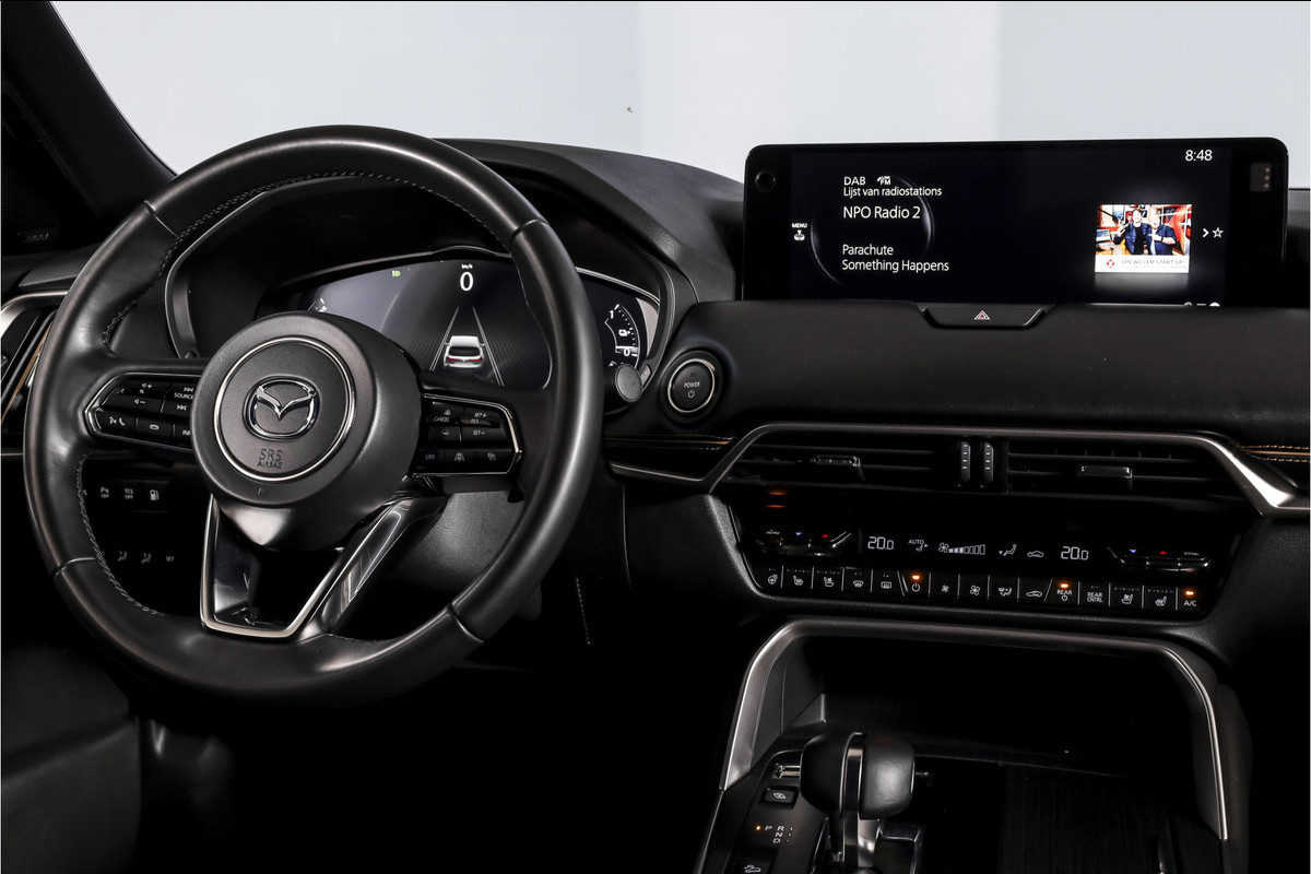 Op het gebied van technologie en gebruiksgemak is deze Mazda zeer compleet. Het volledig digitaal instrumentenpaneel werkt samen met het overzichtelijke head-up display, zodat belangrijke informatie altijd duidelijk zichtbaar is. Navigeren en bedienen gaat eenvoudig via het multimediasysteem met Apple Carplay/Android Auto, aangevuld met een draadloze telefoonlader en een Bose geluidsinstallatie voor een hoogwaardige geluidsbeleving. De electronic climate control en airco separaat achter zorgen ervoor dat alle inzittenden comfortabel reizen.