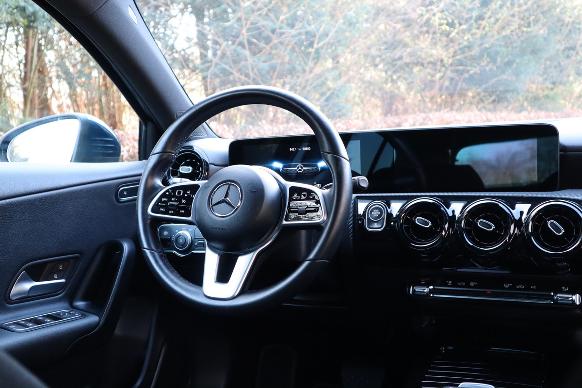 Met het digitale dashboard heeft u essentiële info in beeld. Altijd, overal. Hoeveel ruimte heeft u nog bij het inparkeren? De achteruitrijcamera brengt helder in beeld wat zich achter de auto bevindt en geeft een geluidssignaal. Een veiligheidsverhogende optie is de ingebouwde spraakbediening. Terwijl u uw ogen op de weg houdt, bedient u de auto met uw stem. Zo'n lekkere jonge auto heeft natuurlijk leuke extra's, zoals remote services. Met een speciale app maakt u overal verbinding met de auto. Zo kunt u functies activeren en controleren. Beste route, verwachte aankomsttijd: uw eigen navigatiesysteem met harde schijf vertelt u alles! Ook is de Mercedes-Benz uitgerust met: WIFI-hotspot, automatische airconditioning, DAB ontvangst, regensensor, cruise control en automatisch dimmende buitenspiegels.