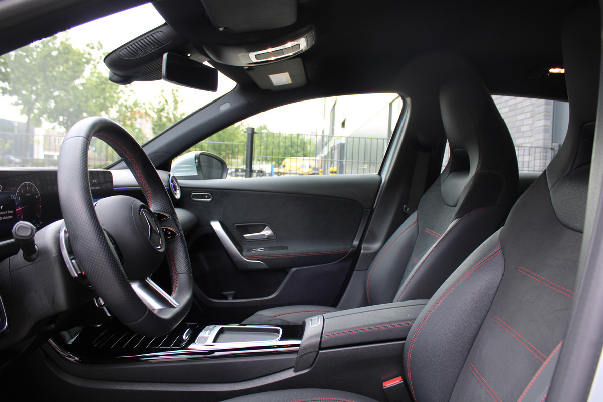Deze Mercedes-Benz is voorzien van verschillende intelligente veiligheidsvoorzieningen. Ze kijken tijdens het rijden als het ware met u mee, ze signaleren potentieel gevaarlijke situaties en in een aantal gevallen kunnen ze ook ingrijpen. In het instrumentarium ziet u tijdens de rit ook de belangrijkste verkeersborden aangegeven, die de auto automatisch voor u leest. Deze Mercedes-Benz A-klasse is ook behulpzaam als het gaat om een rechte koers. Het Lane-keeping systeem signaleert en corrigeert als u onbedoeld de rijstrooklijnen dreigt te overschrijden. Botsingen met een voorligger gebeuren relatief vaak. De forward collision warning slaat tijdig alarm als dat risico ontstaat, zodat u kunt ingrijpen. De veiligheid van deze auto wordt verder verhoogd door vermoeidheidsherkenning, autonoom remsysteem en bandenspanningcontrolesysteem.
