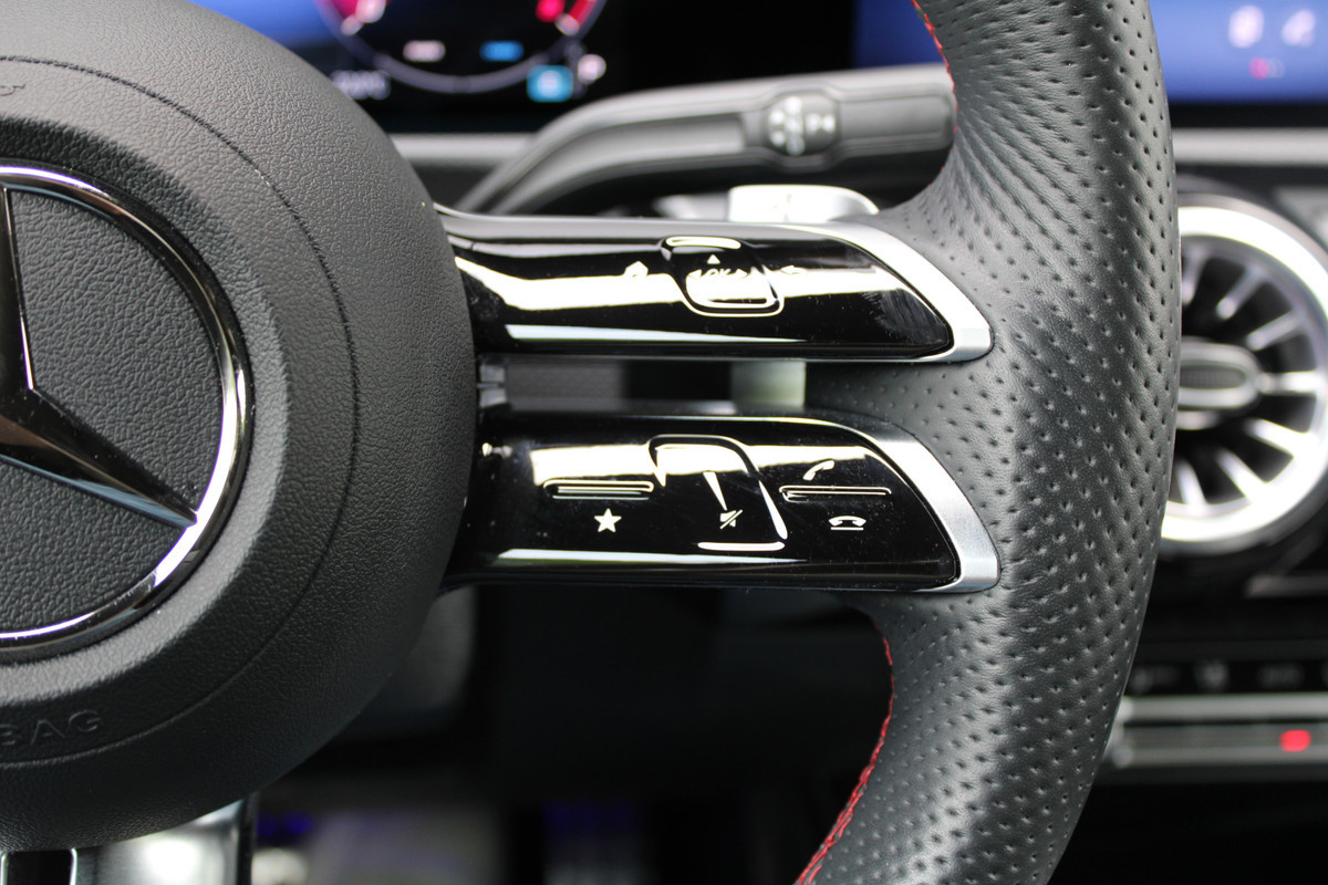 Deze auto is voorzien van een digitaal dashboard waarmee u de cockpit-interface kunt personaliseren. Twijfelen hoeveel ruimte u achter de auto heeft? Met de achteruitrijcamera weet u altijd hoeveel centimeter! Adaptive cruise control is een comfortabele en veilige optie. Het systeem reguleert de snelheid en houdt automatisch afstand tot uw voorligger. Een smartphone met internetverbinding legt eenvoudig overal contact met de auto. U kunt functies activeren en de conditie van de auto monitoren. Terwijl het navigatiesysteem met harde schijf de ideale route voor u uitstippelt, geniet u van de kwaliteit van het audio-installatiesysteem met DAB-ontvangst. De bediening is bovendien gemakkelijk via knoppen op het stuur of via spraak. De uitrusting van deze Mercedes-Benz is met WIFI-hotspot, electronic climate control, sportstuur met schakelpaddels, draadloos opladen, regensensor en automatisch dimmende buitenspiegels behoorlijk compleet.