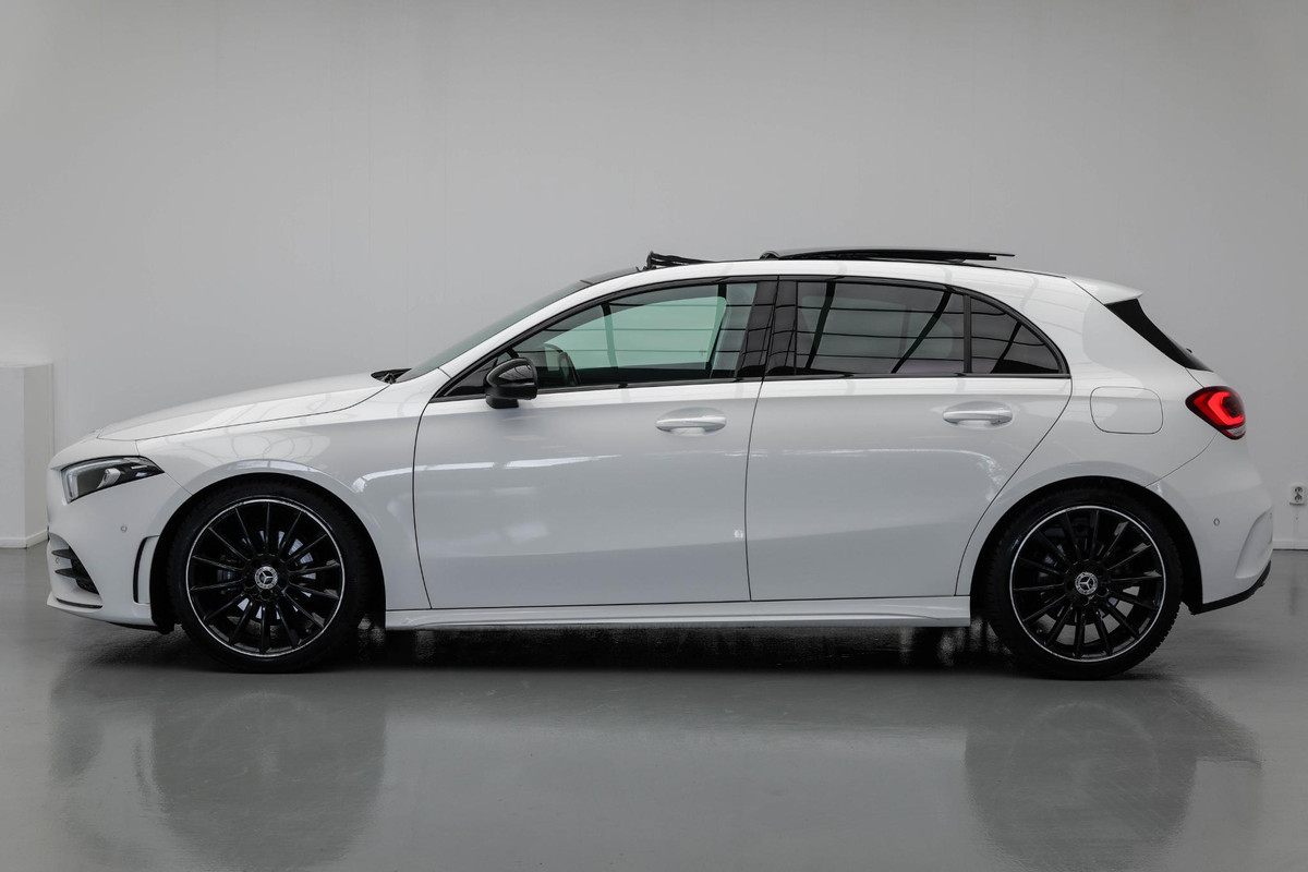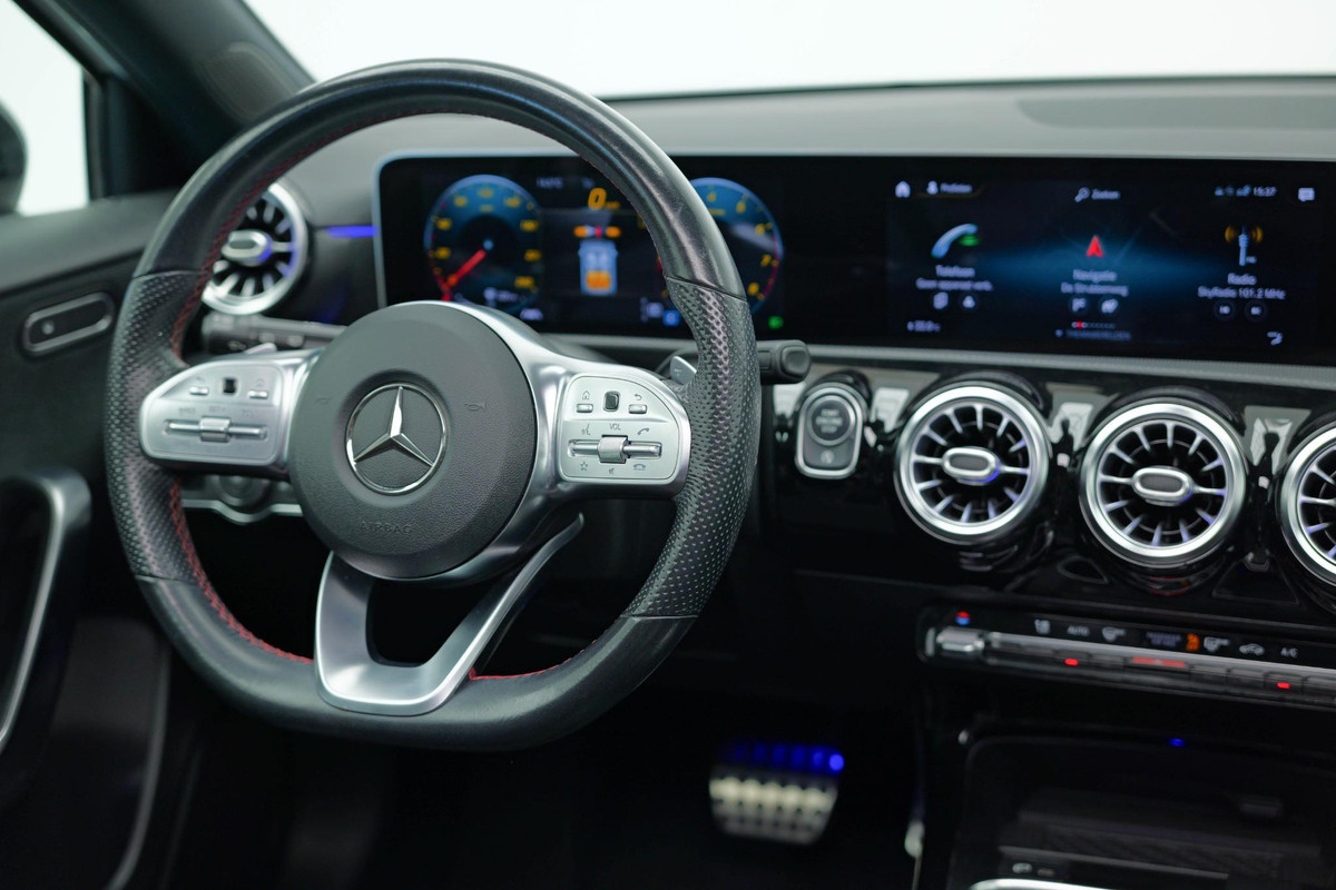 Dankzij hoogwaardige techniek en verschillende veiligheidssystemen, biedt deze Mercedes-Benz A-klasse u optimale veiligheid en comfort tijdens iedere rit. De liefhebbers hebben het al gezien: de sportieve, stoere AMG-styling! Hij heeft een benzinemotor en een automatische transmissie. Lekker hoor, die verwarmbare voorstoelen. Helemaal op koude dagen. Stevig ondersteund door de sportstoelen blijft u bij elke beweging op uw plek. Het elektrisch bediende panoramadak zorgt voor maximale lichtinval en frisse lucht in het interieur. De koplampen met matrix LED-verlichting geven daglichtkwaliteit zonder tegenliggers te hinderen. Ook AMG-styling, warmtewerend glas, in delen neerklapbare achterbank, verstelbare lendensteunen en variabele stuurbekrachtiging zijn aan boord.