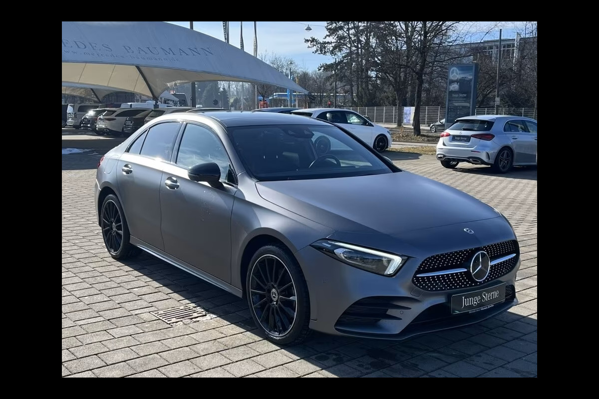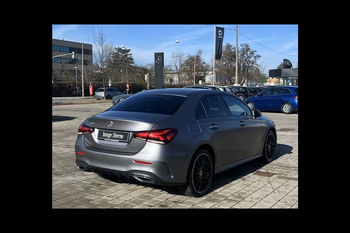 Zeer Rijk uitgevoerde Mercedes-Benz A250e Limousine AMG van 09-2022 met slechts 44.118km. gereden (1e EIG - Unfallfrei - Vol. MB-Dealer Onderh.) in de zeer bijzondere Exterieur Kleur MANUFACTURE MAGNO GRAU (Mat Grijs) met een Antraciet (Rode Stiksels) Half-Leder / Alcantara AMG Interieur die o.a. is uitgerust met de onderstaande Opties & Accessoires: (P55) Night-pakket, (950) AMG Line, (RVK) 19-inch AMG lichtmetalen velgen met meerdere spaken, (233) Actieve afstands-assistent DISTRONIC, (413 ) Electr. bed. glazen Panoramadak, (275) Elektrisch verstelbare voorstoelen met geheugenfunctie, (642) Multibeam LED, (889) Keyless Go.(463) Head-Up Display, (DN2) MBUX High-End Pakket, (458) Volledig digitaal instrumentenpaneel, (426) 8G-DCT Aut. Versn. Bak, (853) Geavanceerd geluidssysteem, (501) 360°-camera, (873) Verwarmde stoelen voor, (293) Zijairbags achter, (DB3) Business Pakket, (PAY) Rijassistentie-pakket, (P49) Spiegelpakket, (628) Adaptieve grootlicht-assistent Plus, (877) Ambiente Sfeerverlichting, (840) Warmte-isolerend donker getint glas incl. Privacy Glas vanaf de B-Style, (581) Thermotronic automatische klimaatregeling, (U62) Licht- en zichtpakket. (345) Ruitenwissers met regensensor, (351) Mercedes-Benz noodoproep systeem, (500) Elektrisch inklapbare buitenspiegels, (249) Automatisch dimmende binnen- en buitenspiegels, (U10) Automatische de-activering passagiersairbag, (294) Knie-airbag, (U22) 4-voudige lendensteun, (7U4) Sportstoelen, (485) Comfortonderstel, (R01) Zomerbanden, (286) Bagagenet op de rugleuningen van de voorstoelen, (U26) AMG-vloermatten, (310) Dubbele bekerhouder, (51U) Zwarte stoffen hemelbekleding, (2U1) AIRPANEL, (546) Actieve snelheidsbegrenzer-assistentie, (266) Actieve stuurbekrachtiging, (235) Actieve parkeer-assistentie met PARKTRONIC, (16U / 17U) Android Auto / Apple CarPlay, (273) Uitstapwaarschuwing, (355) Digital Extra: Uitgebreide MBUX-functies / Harde schijf navigatie / MBUX Navigatie Plus / Remote en Oplaadservices Plus / Smartphone-integratie / Verkeersbordassistent / Voorbereiding voor Live Verkeersinformatie / Voorbereiding voor MBUX Entertainment / Voorbereiding voor navigatieservices / Voorbereiding voor afstandsbediening en navigatieservices, (537) Digitale radio, (B59) Dynamic Select, (U45) Deurlijsten met "Mercedes-Benz" opschrift - verlicht en met verwisselbare afdekking, (K33) Uitgebreide automatische herstart bij files, (63B) Voertuigaansluiting, (U01) Weergave van de status van de achterste veiligheidsgordels in het instrumentenpaneel, (U60) Voetgangersbescherming, (431) Gegalvaniseerde schakelpaddles aan het stuur, (8U8) i-Size kinderzitje bevestiging, (897) Draadloos laadsysteem voor mobiele apparaten voor, (B30) Laadkabel tot 1,8 kW voor huishoudelijk stopcontact, (9B2) Laadkabel voor wallbox en openbaar laadstation, (548) MBUX multimediasysteem, (L5I) Multifunctioneel sportstuur in Nappa-leder / DINAMICA microvezel, (DAP) Openbaar Laadpakket, (475) Bandenspanningscontrolesysteem (TPMS), (K13) Onderhoudsinterval 25.000 km, (U59) Stoelcomfort pakket, (287) Neerklapbare achterbankleuning, (543) Zonneklep met verlichte make-upspiegels, (446) Touchpad, (H15) Decoratieve Interieur elementen: open poriën zwart lindenhout, etc, etc.....