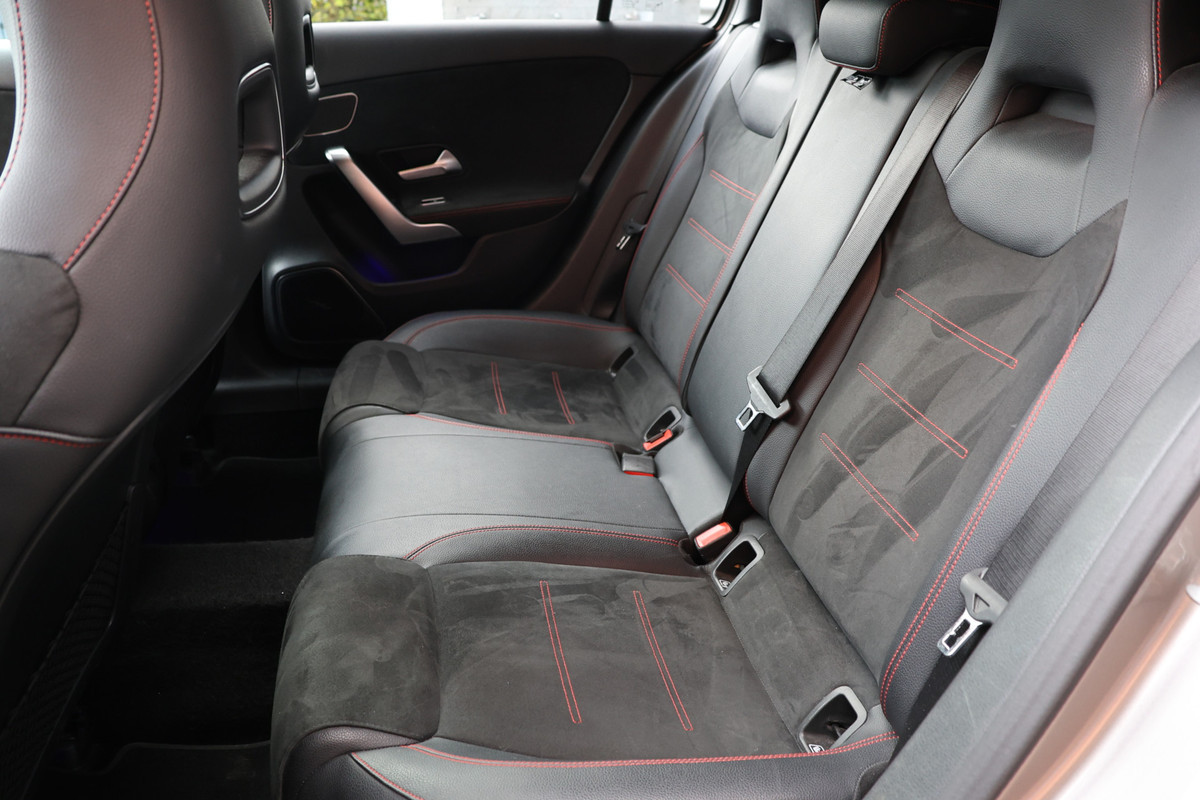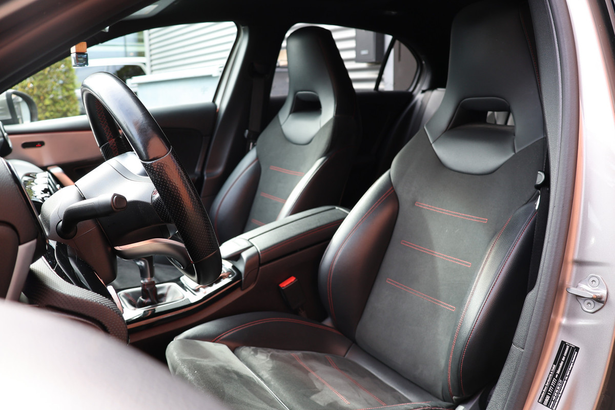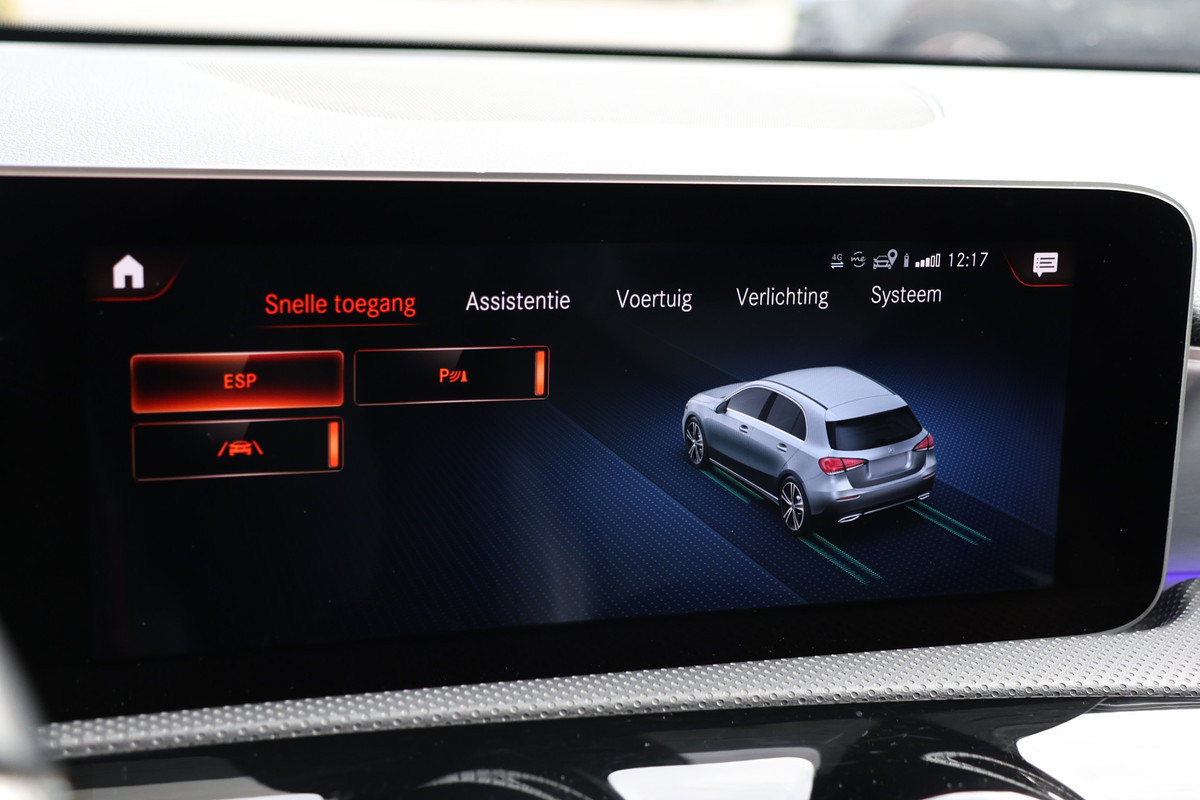 Zoals u mag verwachten van deze Mercedes-Benz A-klasse is hij uitgerust met een reeks aan actieve veiligheidssystemen. In het instrumentarium ziet u tijdens de rit ook de belangrijkste verkeersborden aangegeven, die de auto automatisch voor u leest. Het Lane-keeping systeem let constant op en waarschuwt of corrigeert als u onoplettend over de lijnen van de rijstrook gaat. De forward collision warning reduceert het gevaar van een botsing met een voorligger significant. In deze Mercedes-Benz vinden we verder een brake assist en bandenspanningcontrolesysteem.