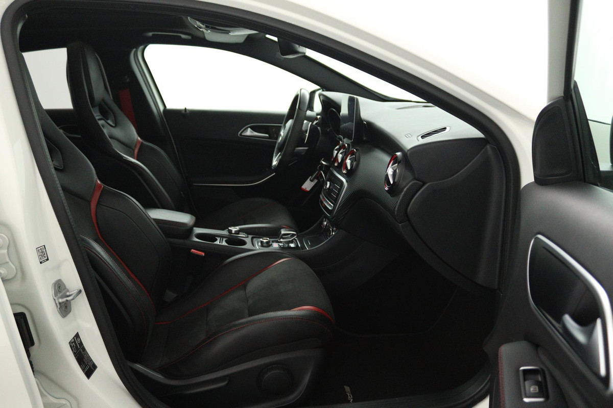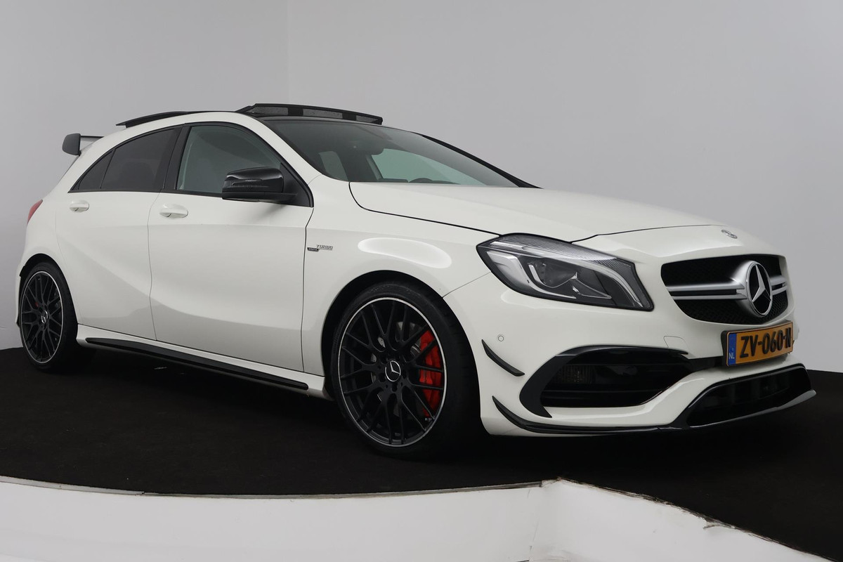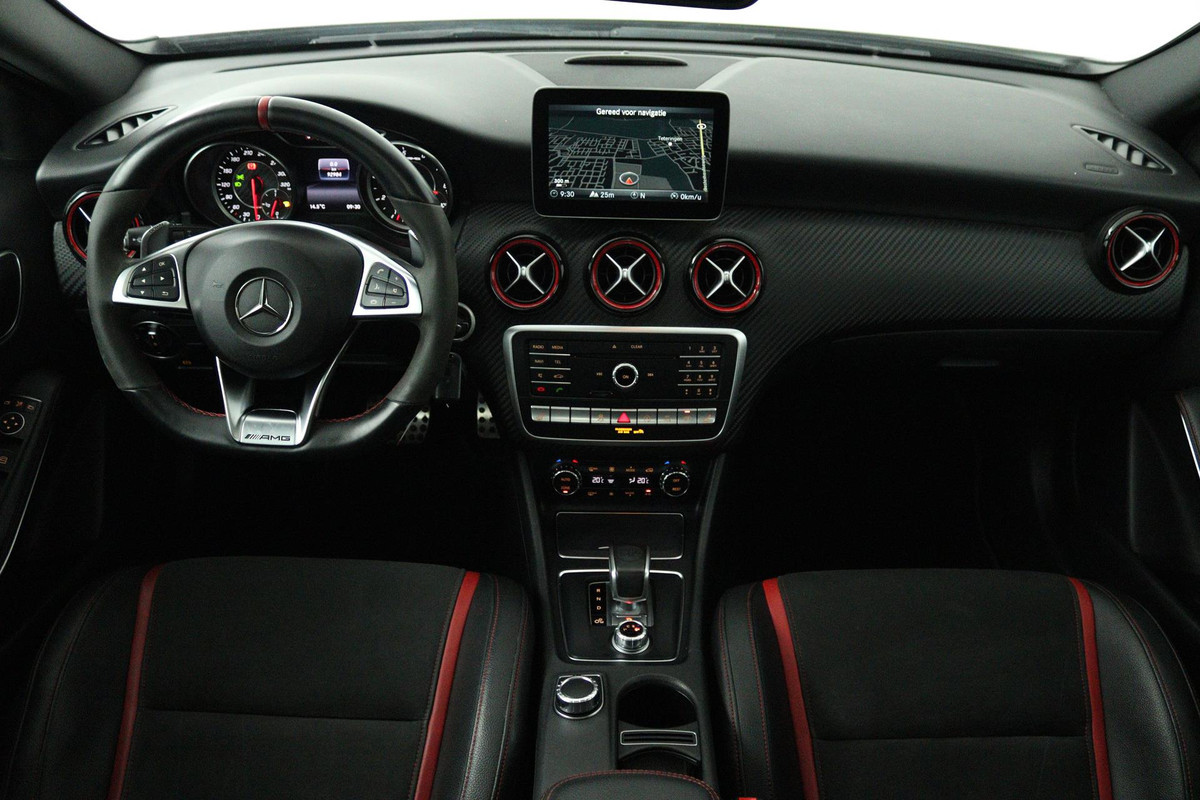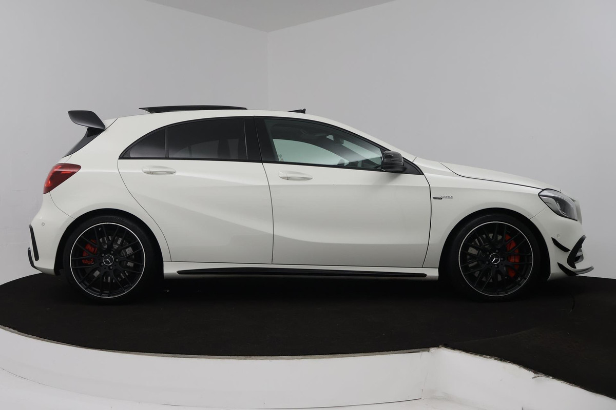 Mercedes-Benz A-Klasse AMG 45 4MATIC (PANORAMADAK, AERO PAKKET, KUIPSTOELEN, STOELVERWARMING, CAMERA, DEALER ONDERHOUDEN)