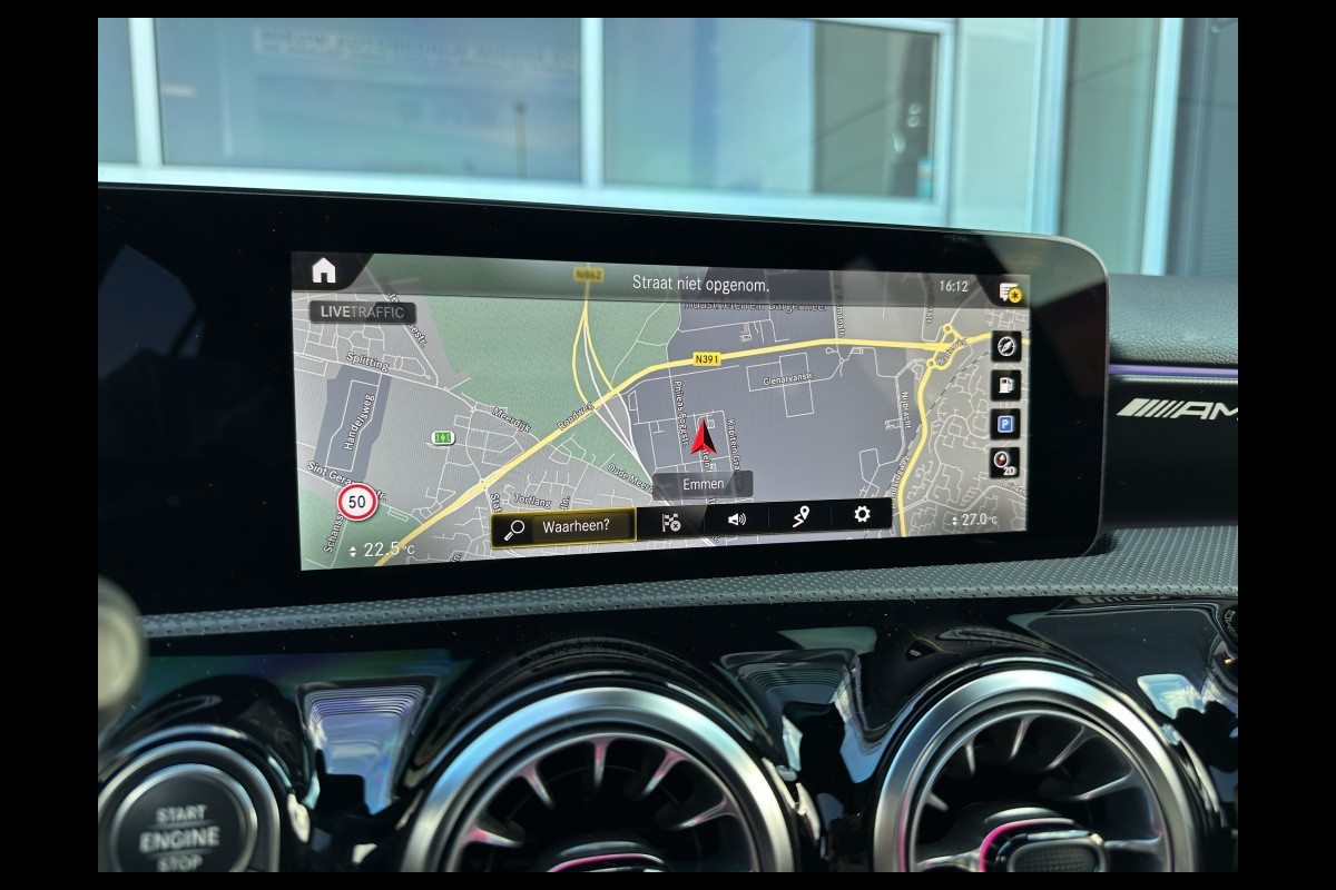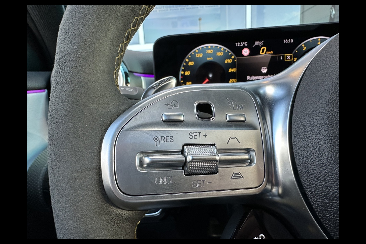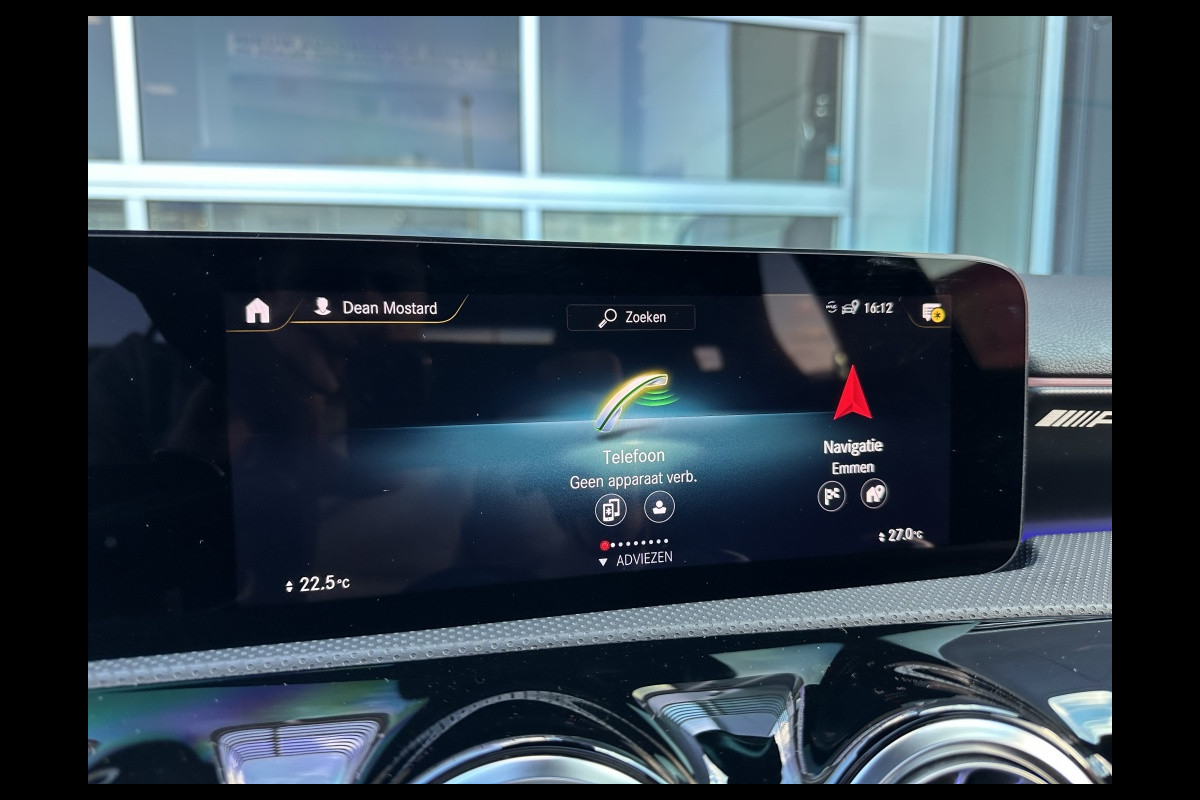 Binnenin voel je meteen de luxe: de sportstoelen omarmen je, het AMG-stuur ligt perfect in de hand, en het infotainmentsysteem met Apple CarPlay en Android Auto houdt je verbonden. Het panoramadak laat het licht binnenstromen en versterkt het gevoel van ruimte en vrijheid.